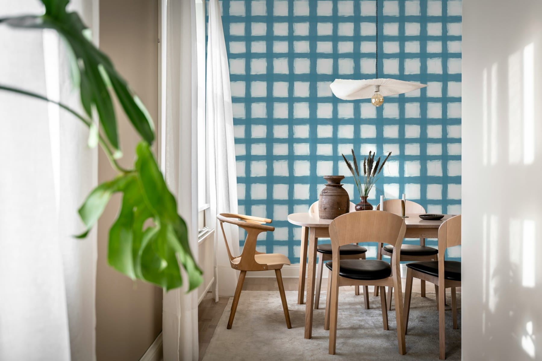 „Painted Square, Blue” oferă o abordare revigorantă a designului modern, cu pătratele sale pictate manual într-o paletă de tonuri blânde de albastru. Aceste nuanțe delicate aduc un sentiment de calm și ordine, făcând acest tapet ideal pentru spațiile în care liniștea și stilul sunt esențiale. Perfect pentru dormitoare, birouri sau orice cameră care necesită o notă de eleganță rece, acest design se integrează cu ușurință în diverse teme de decor, adăugând totodată un flair contemporan.