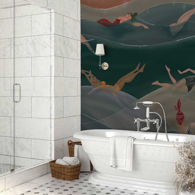 Adaugă o notă de eleganță și rafinament băii tale cu Palais de Chaillot. Acest design unic prezintă femei elegante înotând grațios prin valuri, într-un cadru vibrant și plin de viață. Culorile bogate și detaliile fine transformă orice baie într-un spațiu relaxant și elegant. Palais de Chaillot este o alegere perfectă pentru a crea o atmosferă sofisticată și relaxantă în baie.