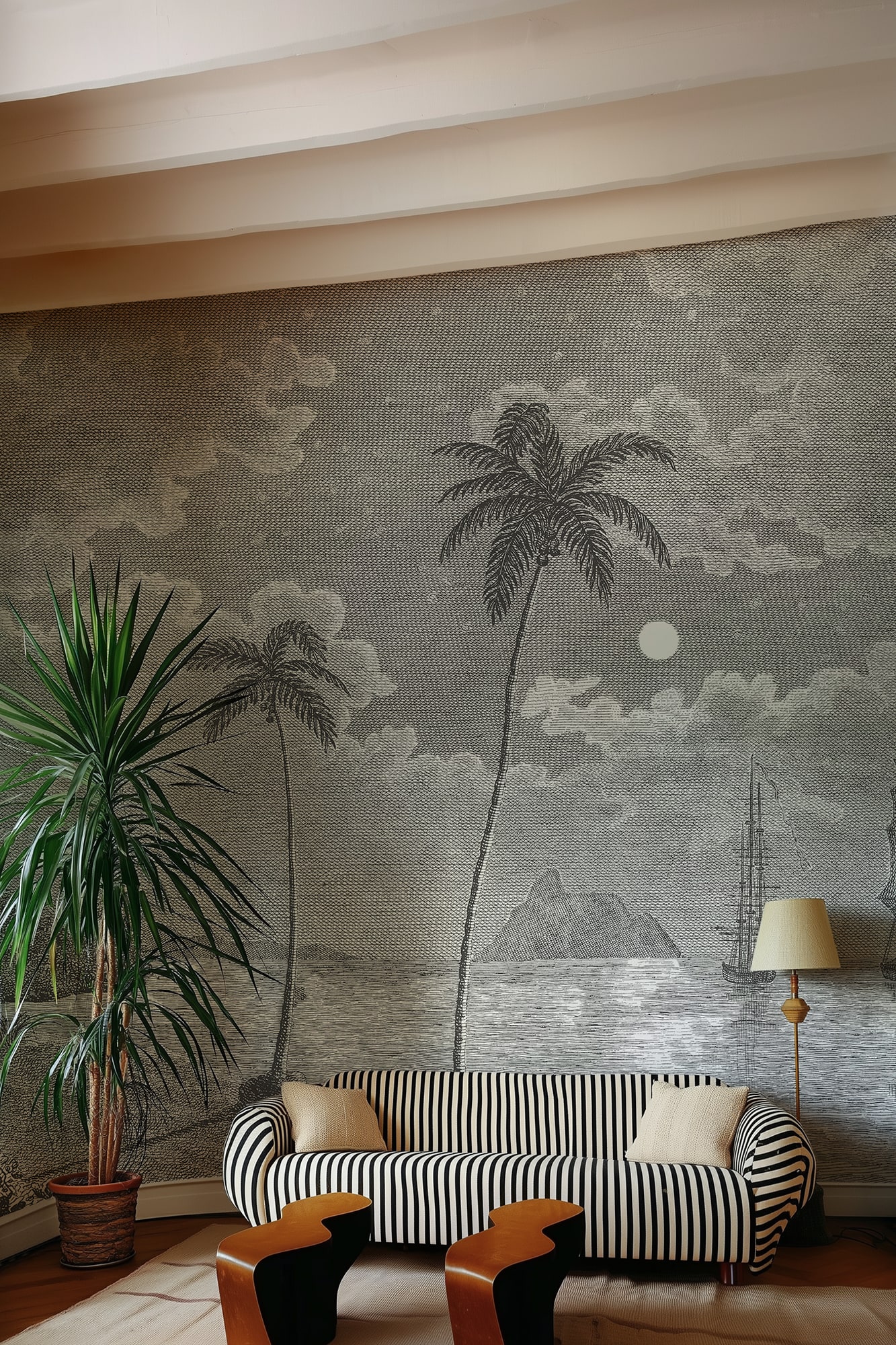 Home Tapet și Fototapet Palm Beach, Black & White, Rebel Walls