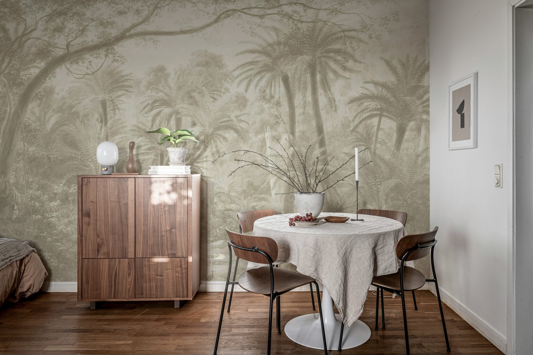 Tapetul Palm Landscape, Beige oferă o portretizare senină a unui paradis tropical, cu palmieri și frunze detaliate în tonuri de bej moi și surde. Gradientele subtile și detaliile fine creează o ambianță aerisită și liniștită, făcându-l ideal pentru dormitoare, camere de zi sau spații în care relaxarea este esențială. Paleta monocromatică de bej sporește eleganța atemporală a designului, permițându-i să se îmbine perfect cu diverse stiluri de interior. Fie că doriți să evocați un refugiu tropical sau pur și simplu să adăugați o notă de frumusețe inspirată din natură, Palm Landscape, Beige este alegerea perfectă pentru un decor sofisticat și liniștitor.