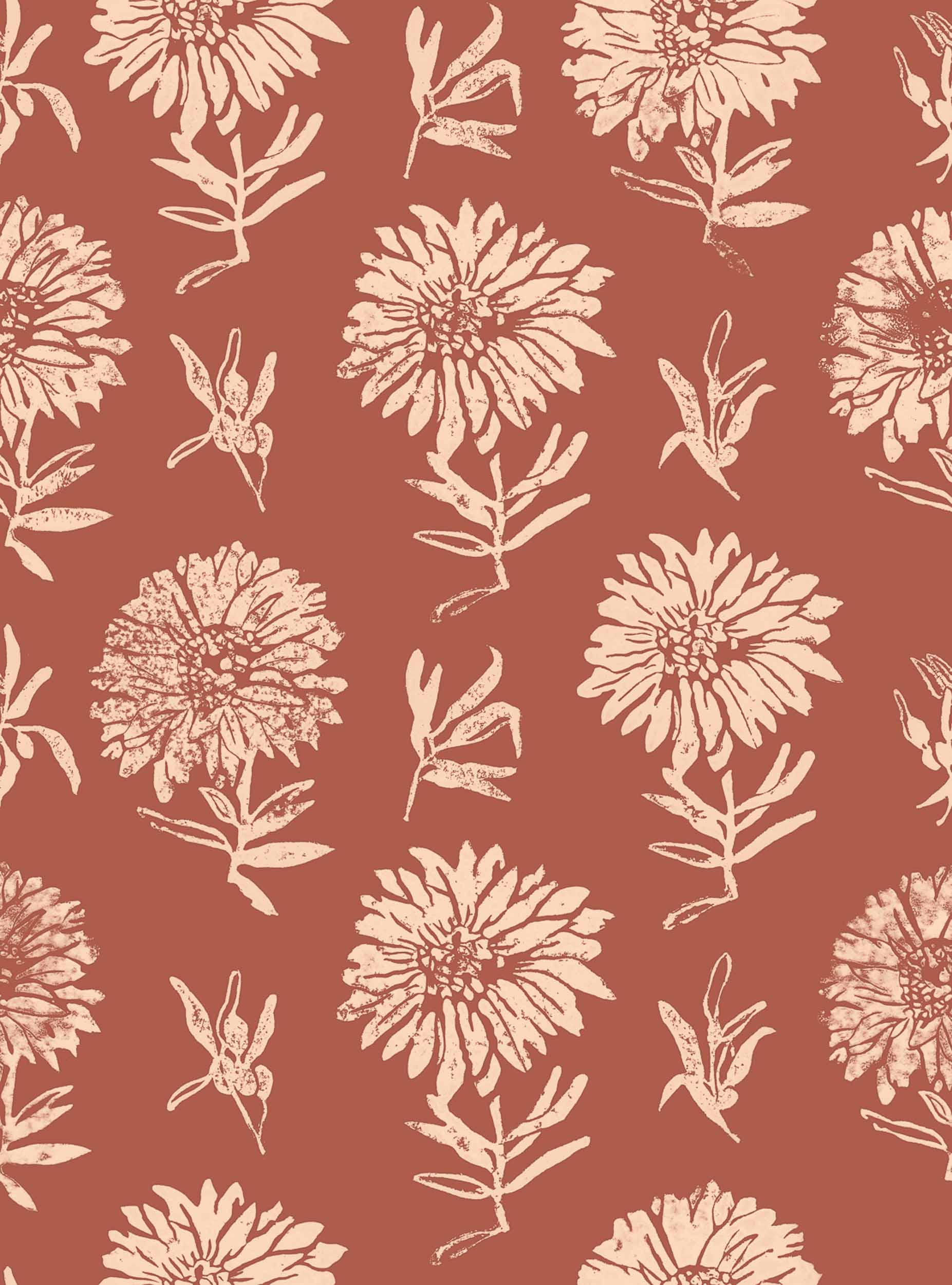 Parterre, Azafrán, din colecția Lur, este un design floral, în nuanțe de roșu/vin. Plantații explozive de floarea-soarelui care proiectează o energie luminoasă.
