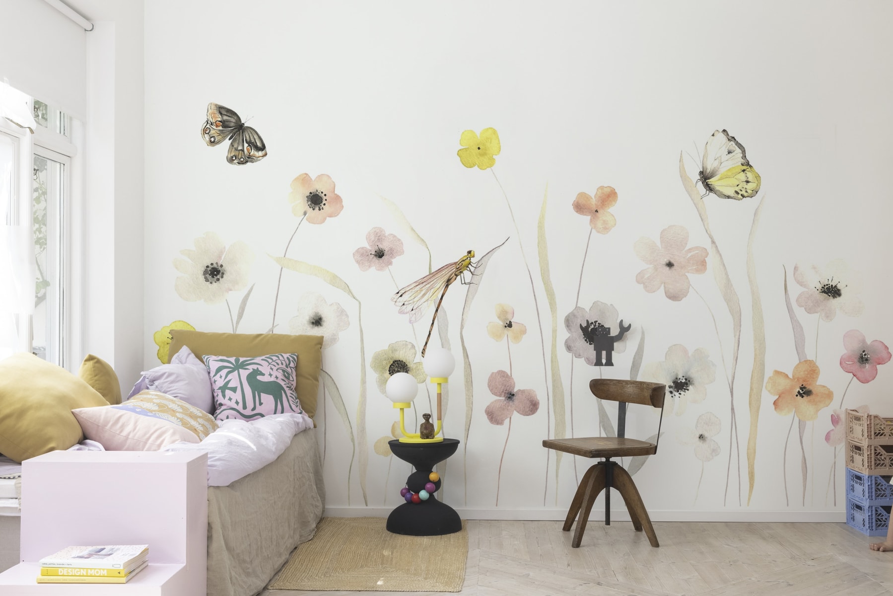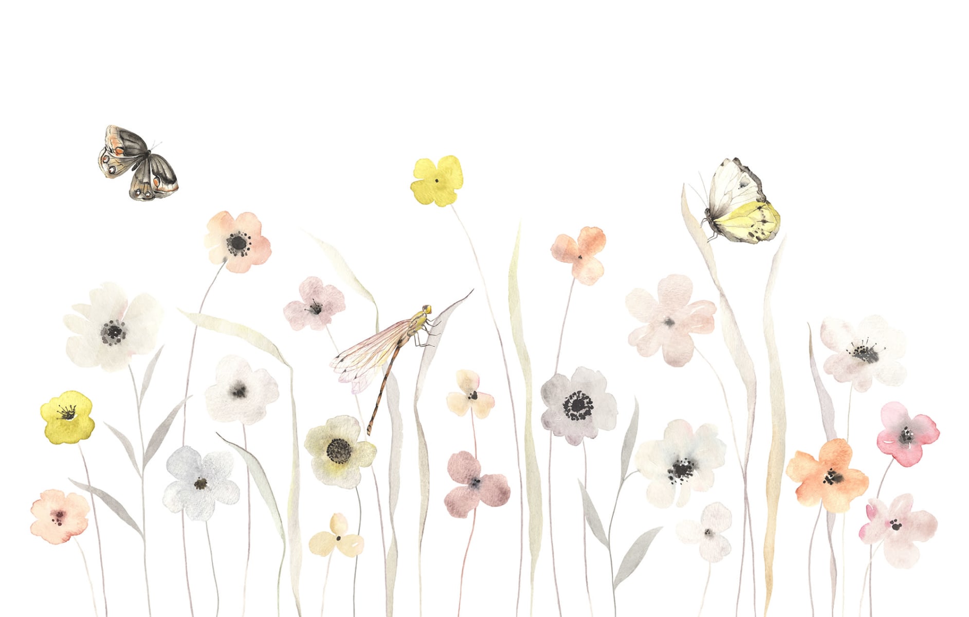 Pastel Flowers, modalitatea perfectă de a adăuga o notă naturală decorului casei tale. Cu motivul său abstract de flori sălbatice și fluturi, acest tapet va surprinde cu siguranță frumusețea în aer liber și o va aduce chiar în casa dvs.
