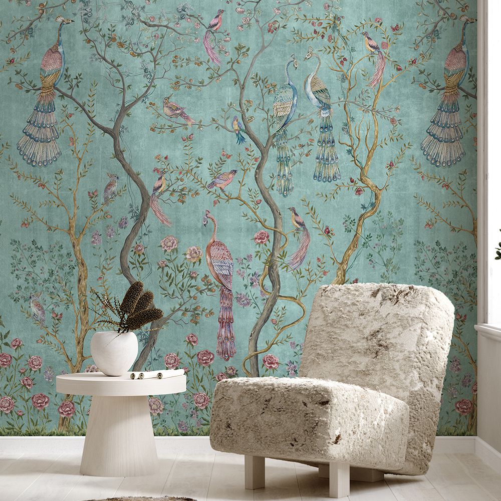 Home Tapet și Fototapet Peacock Chinoiserie in Turquoise, VLAdiLA