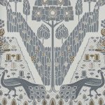 Peacock Topiary este inspirat dintr-o țesătură de arhivă V&A care are peste 100 de ani. Un aranjament plin de bucurie cu peluze îngrijite, gard viu sculptat, lalele și un păun mândru și pasionat pe terenul unei case tipic englezești. Un tapet tipărit în mod tradițional pentru a reproduce cusăturile fin detaliate și măreția impresionantă a originalului. În gri monocrom, aduce o senzație contemporană acestui model elegant.