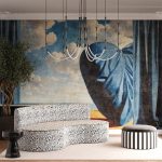 Adaugă un strop de eleganță și mister în casa ta cu acest design de tapet cu macarale elegante. Motivele geometrice