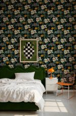 Improspătează-ți decorul cu acest tapet floral pe fundal negru. Ideal pentru orice cameră, adaugă un plus de eleganță și rafinament.