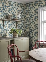 Tapetul nostru iubit „Pine” într-un peisaj nordic. Copacul se înalță impunător deasupra secolelor și rămâne verde tot timpul anului cu frunzele sale sclipitoare, în ciuda frigului amar și a zăpezii. Ramurile acoperă peretele într-un dans ușor, cu modele mari. Vibrant, dar liniștit. Varianta de culoare „Blue” are o expresie vibrantă, dar liniștită, fiind reprezentată într-un albastru profund pe un fundal bej cald.