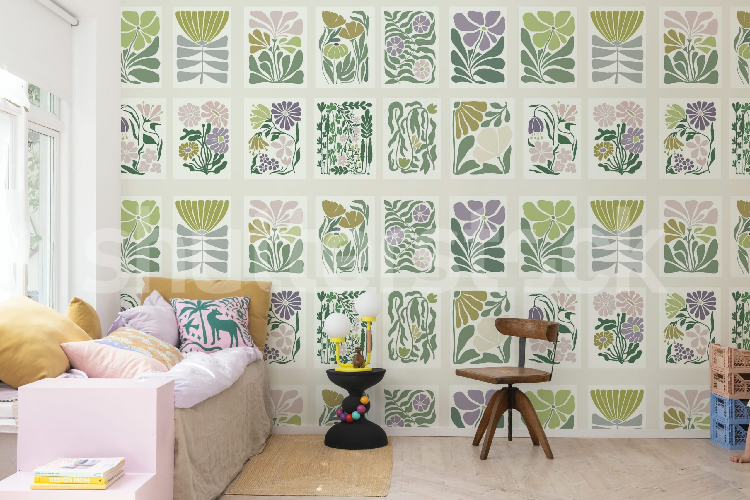 Adaugă o notă artistică și jucăușă spațiului tău cu acest tapet floral pastel. Designul delicat și culorile blânde transformă orice cameră într-un sanctuar plin de farmec. Ideal pentru dormitoare, livinguri sau camere de copii.