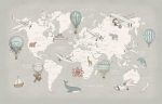 Fototapetul personalizat World Map, Blue, de la Rebel Walls, este o altă reprezentare estetică a hărții mapamondului, de această dată