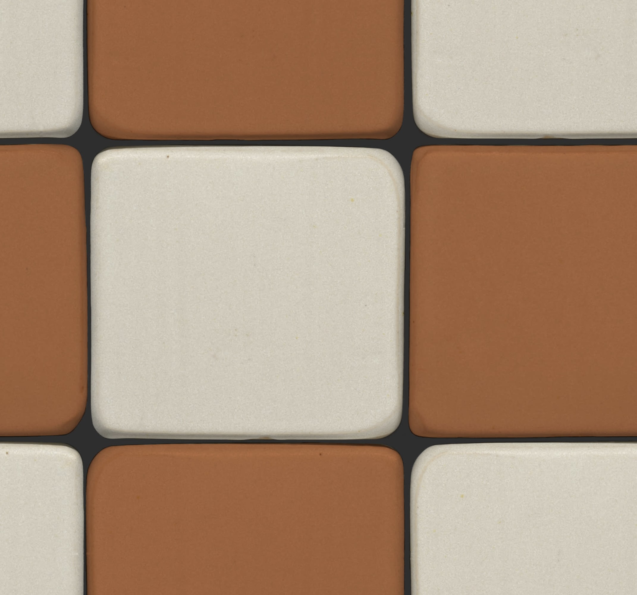 Acest model jucaus și elegant din plăci de porțelan realizate manual are un aspect autentic și o suprafață mată frumoasă. Alegeți expresia dorită dintre numeroasele noastre opțiuni de culori fabuloase. Porcelain Tiles, Orange, are plăci portocalii și alb-murdar, cu rosturi negre.