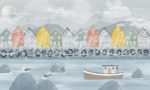Transportă-te într-o evadare lină pe malul mării cu tapetul „Port Village”. Ilustrând un oraș de coastă nordic cu case din lemn în culori vii lângă mare, aduce o priveliște revigorantă care ademenește spre viață și liniște.