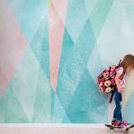 Prisma multi este o operă de artă murală cu acuarele jucăușe în stil grafic. Prisma este un tapet imprimat digital, aici în culorile verde, albastru, roz și galben.