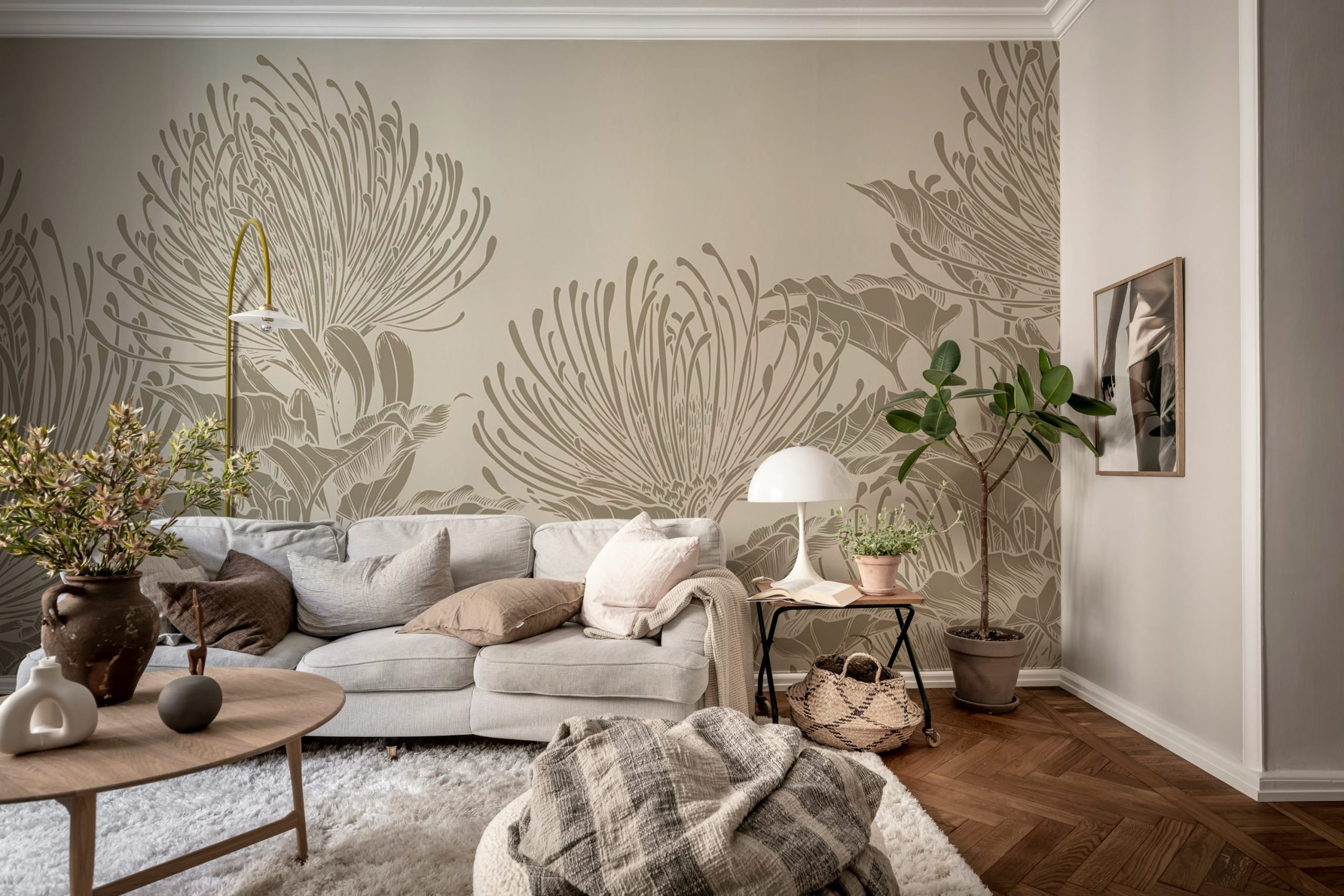 Home Tapet și Fototapet Protea Bloom, Soft Gray, Rebel Walls