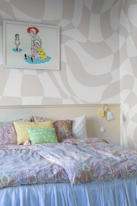 Stupefiat!? Sau măcar se învârte! Acest tapet aduce ceva în plus, cu pătrate care creează iluzia de mișcare pe un fundal alb. Varianta Beige vine în cel mai delicat bej pastel nisipos.