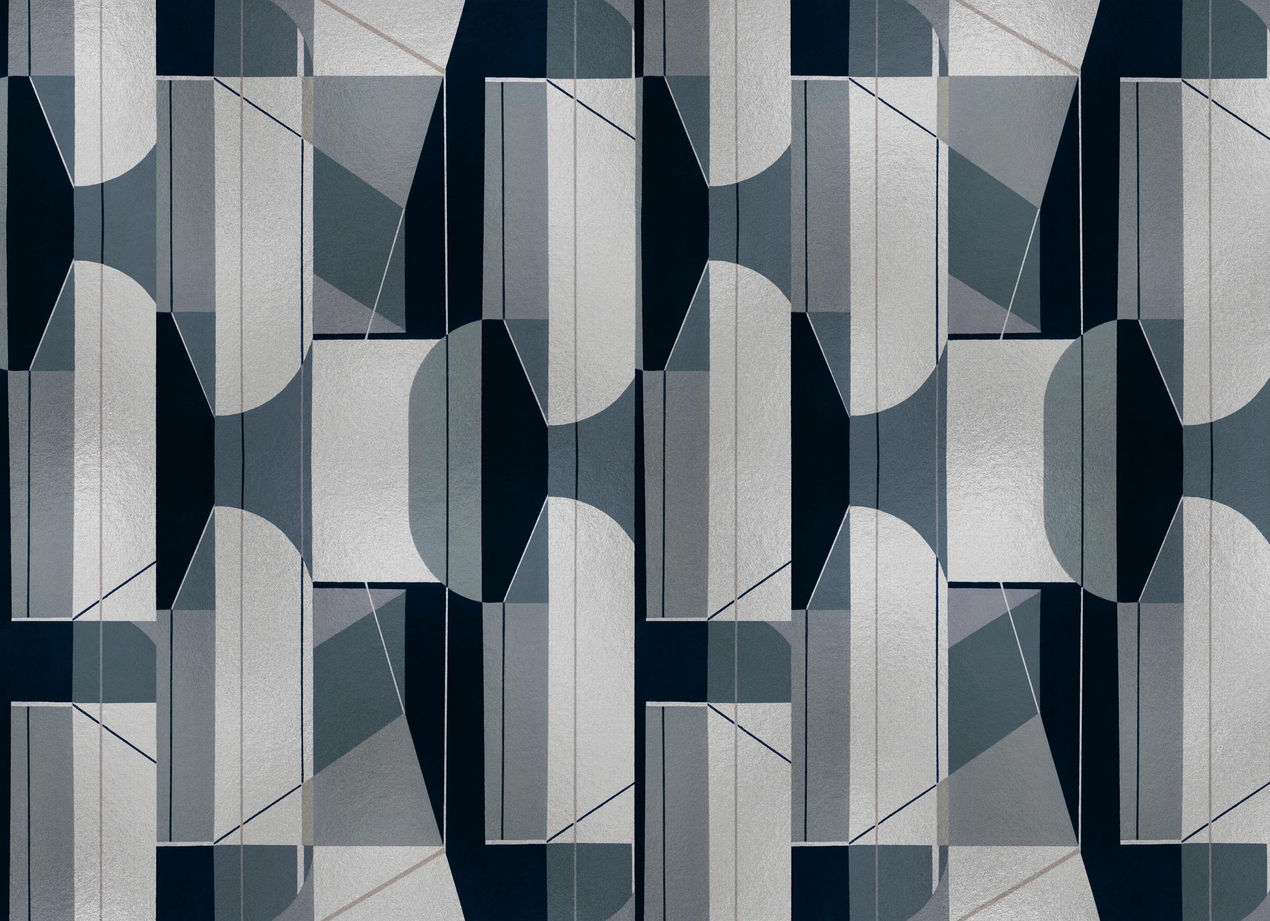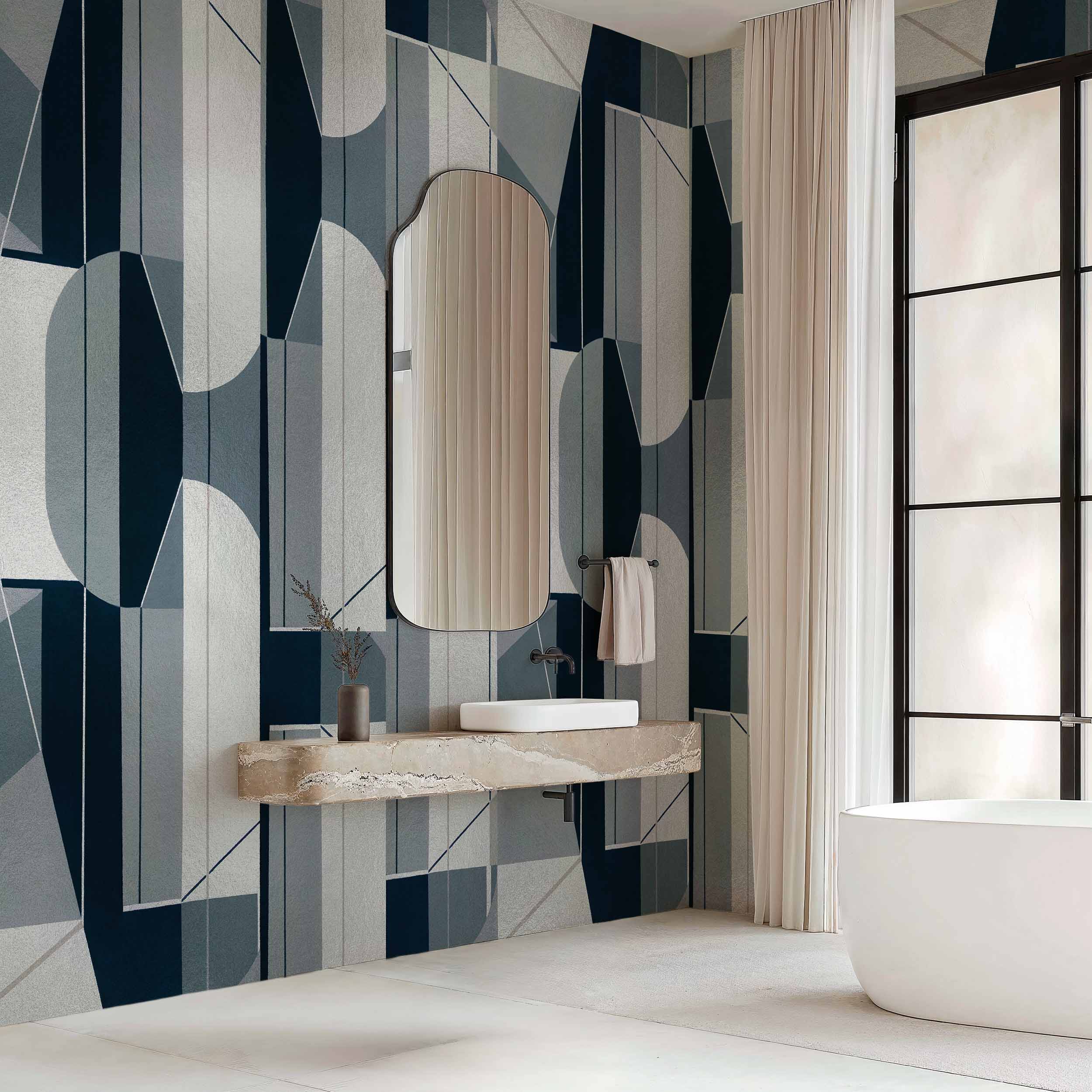 Acest tapet aduce un design geometric elegant, cu tonuri de gri și accente argintii. Ideal pentru un decor modern și sofisticat.