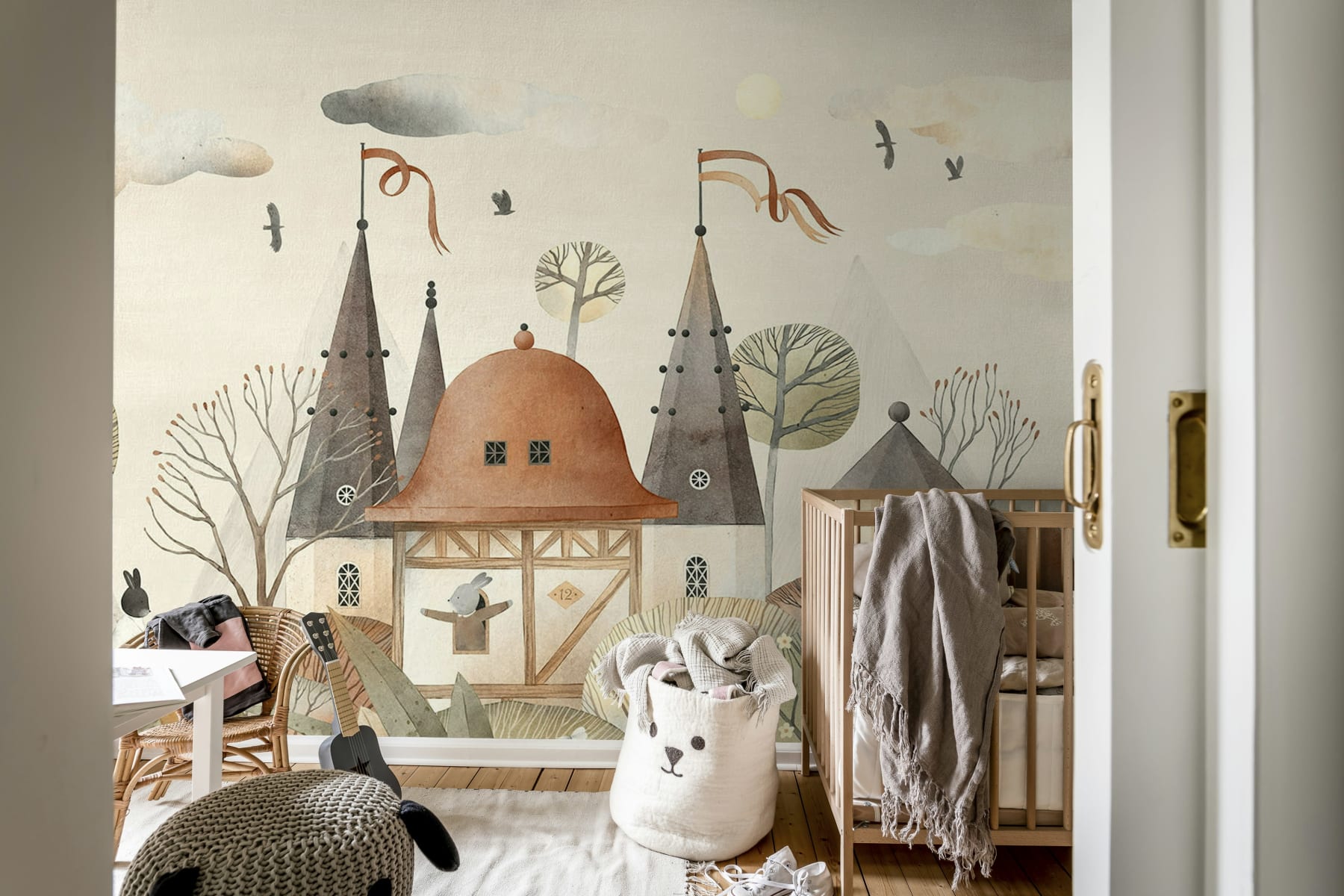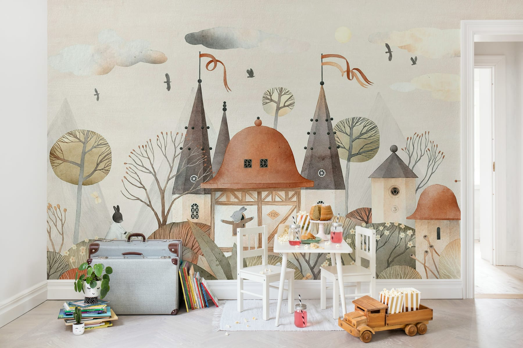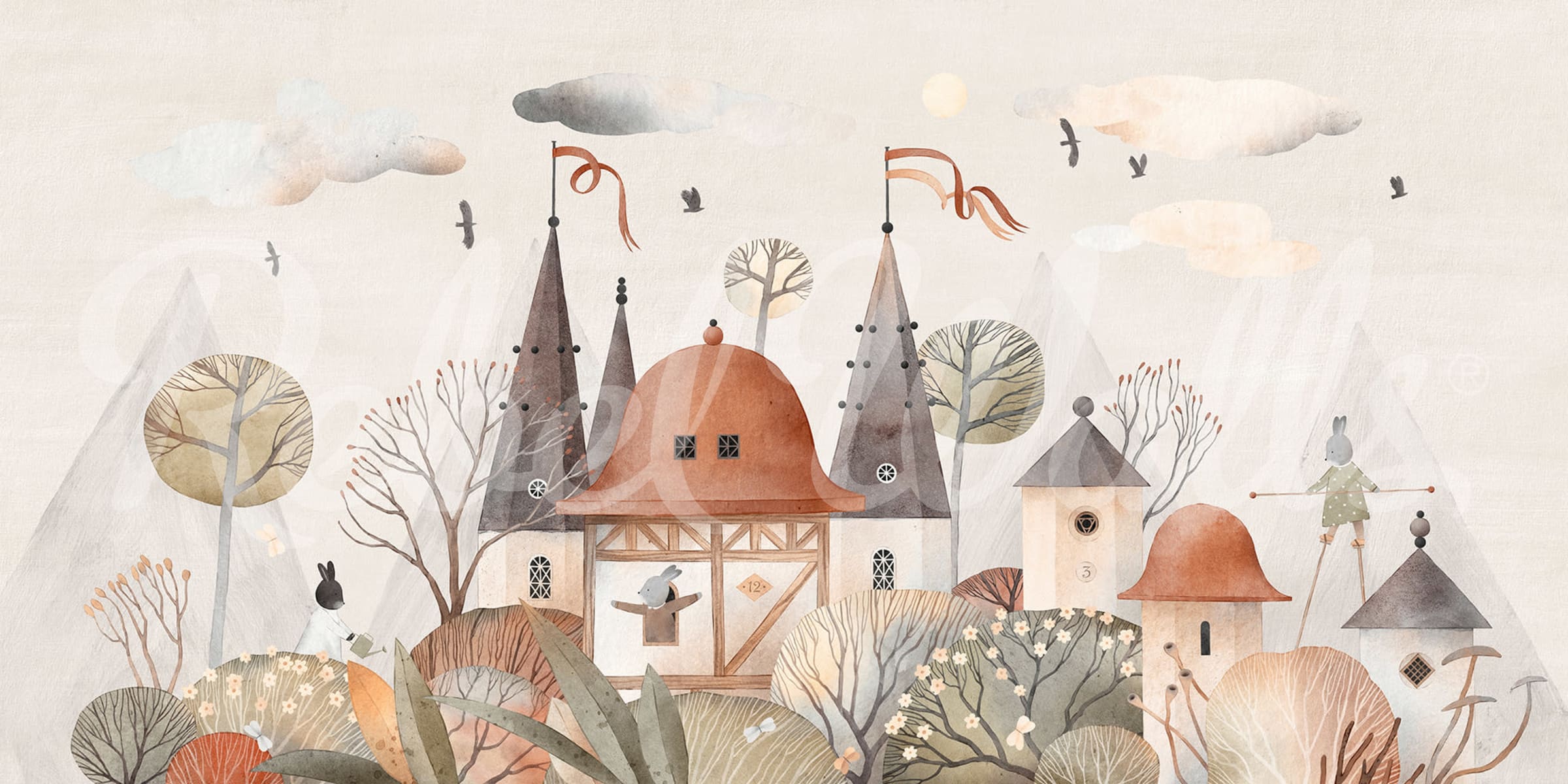 Lăsați pereții să spună o poveste fermecătoare cu tapetul Rabbit Town, Autumn. Acest tapet încântător aduce la viață un sat de poveste, unde căsuțele pitorești și potecile șerpuitoare sunt locuite de iepurași prietenoși. Cu nuanțele sale blânde de toamnă și peisajul jucăuș, acest design invită o atmosferă cozy și imaginativă în orice cameră. Este perfect pentru camerele copiilor, camerele de joacă sau orice spațiu care dorește o notă de magie și căldură. Paleta de culori delicate și ilustrația artistică detaliată fac din Rabbit Town, Autumn un fundal fermecător pentru mințile creative și interioarele de vis.