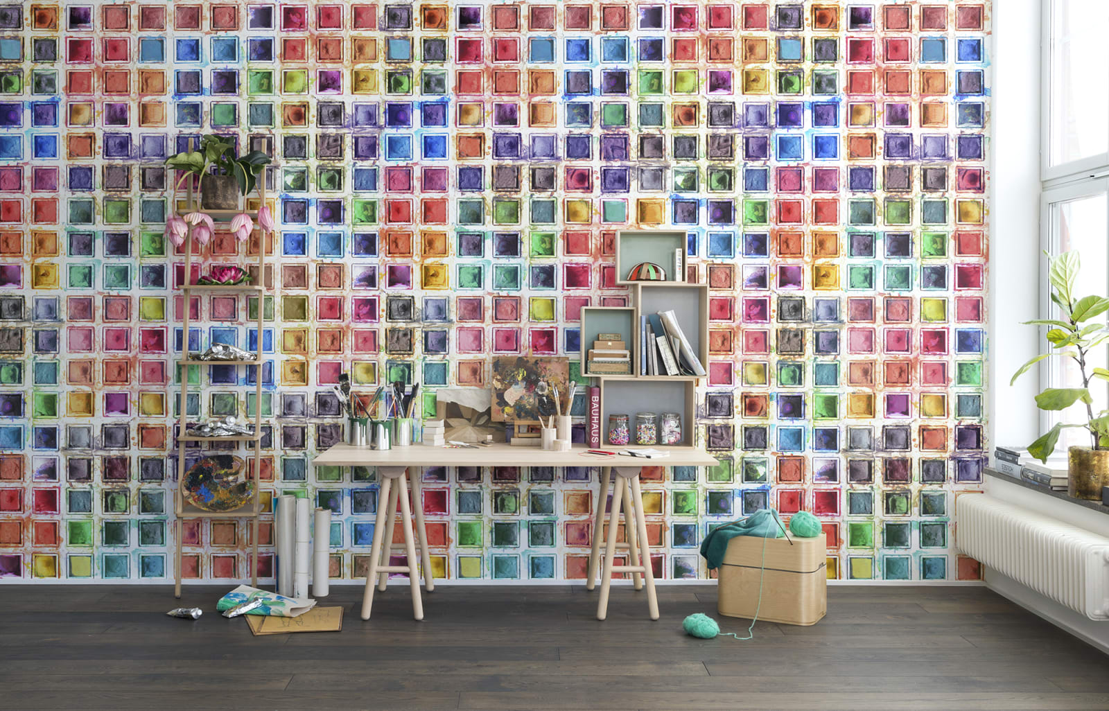Pătrate stricte, exacte, alăturate unul lângă celălalt pentru a forma acest fototapet colorat și jucăuș. Toate culorile curcubeului sunt prezente în acest model. Dacă ați colorat vreodată în acuarelă, vă este cunoscută atât plăcerea cât și dificultatea pe care o provoacă această tehnică. Fototapetul Rainbow Palette aduce un omagiu acuarelelor.
