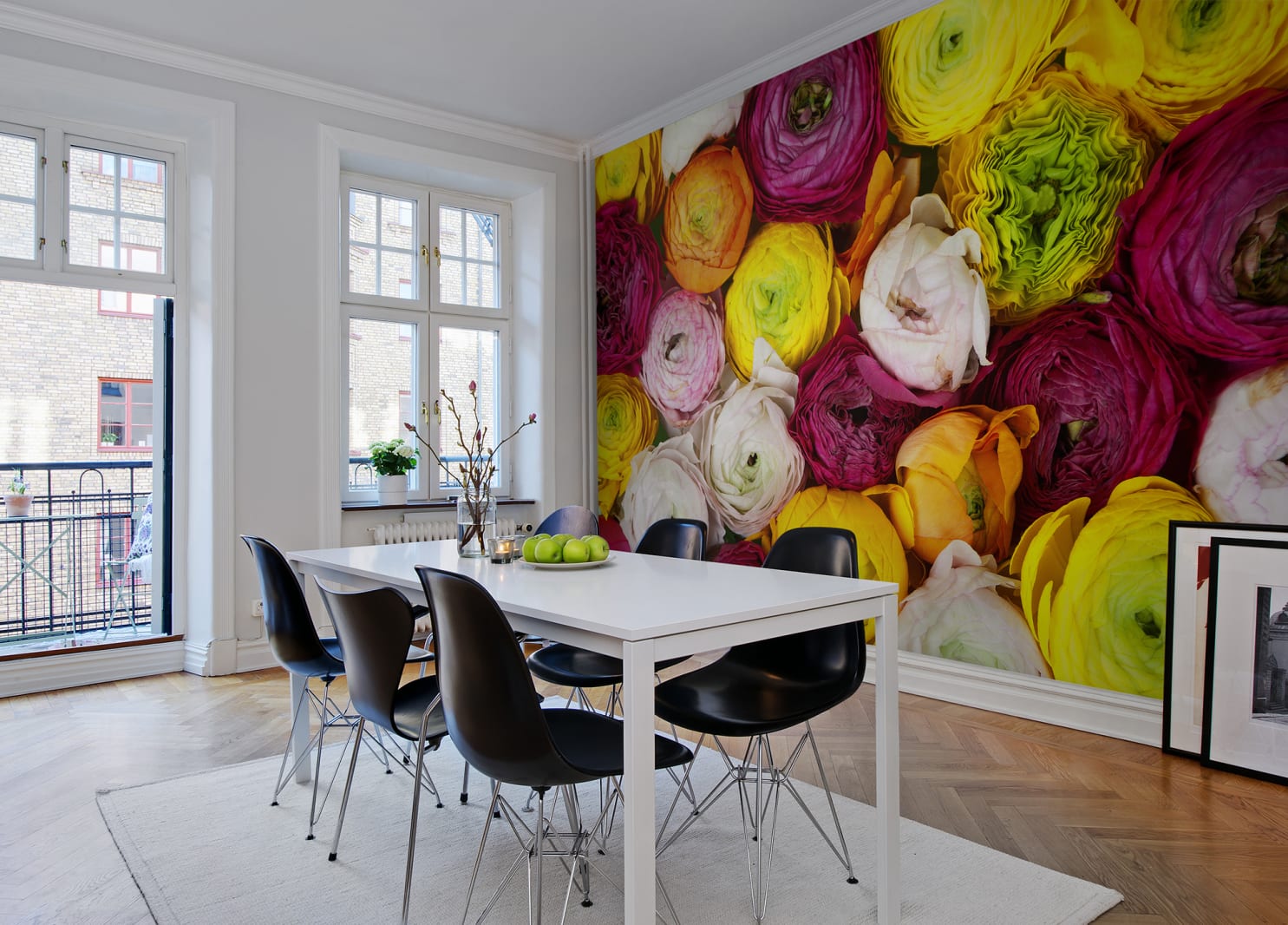O grădină mereu înflorită, la tine în casă! Îmbracă-ți peretele în flori și transformă camera într-un loc romantic și boem. În culori vii, fototapetul Ranunculus va aduce un aer vesel și proaspăt oricărei încăperi!