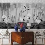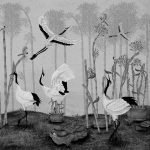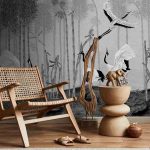 Adăugați o notă de eleganță și liniște în casa dvs. cu acest tapet monocrom cu macarale. Designul minimalist cu macarale grațioase în zbor, înconjurate de un decor luxuriant de bambus, va aduce un aer rafinat și exotic în orice cameră. Tapetul este ideal pentru a crea un ambient relaxant și zen, perfect pentru living, dormitor sau birou.