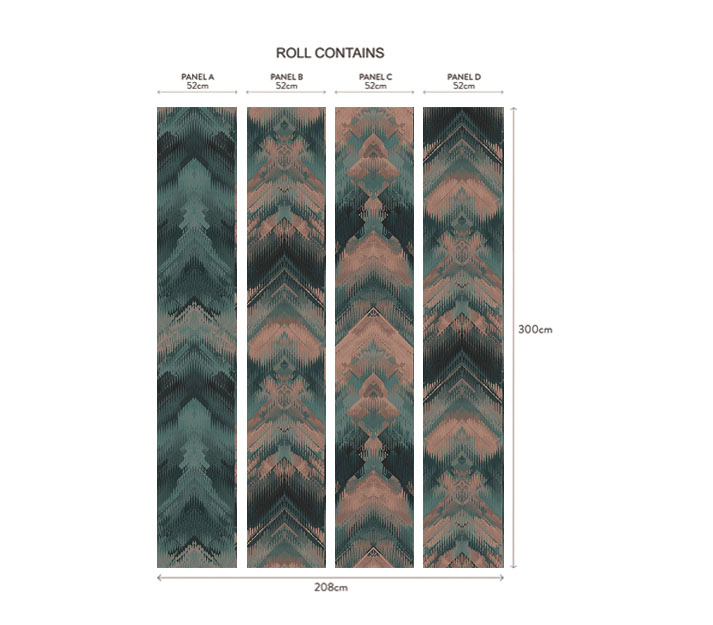 O rolă conține 4 panouri (A, B, C și D) pentru designul complet. Proiectarea poate fi repetată pentru a acoperi pereți suplimentari, utilizând o altă rolă în aceeași ordine (A B C D) până când suprafața este acoperită. În funcție de înălțimea peretelui, panoul poate fi decupat în partea de sus, jos sau ambele pentru a crea scena dorită.