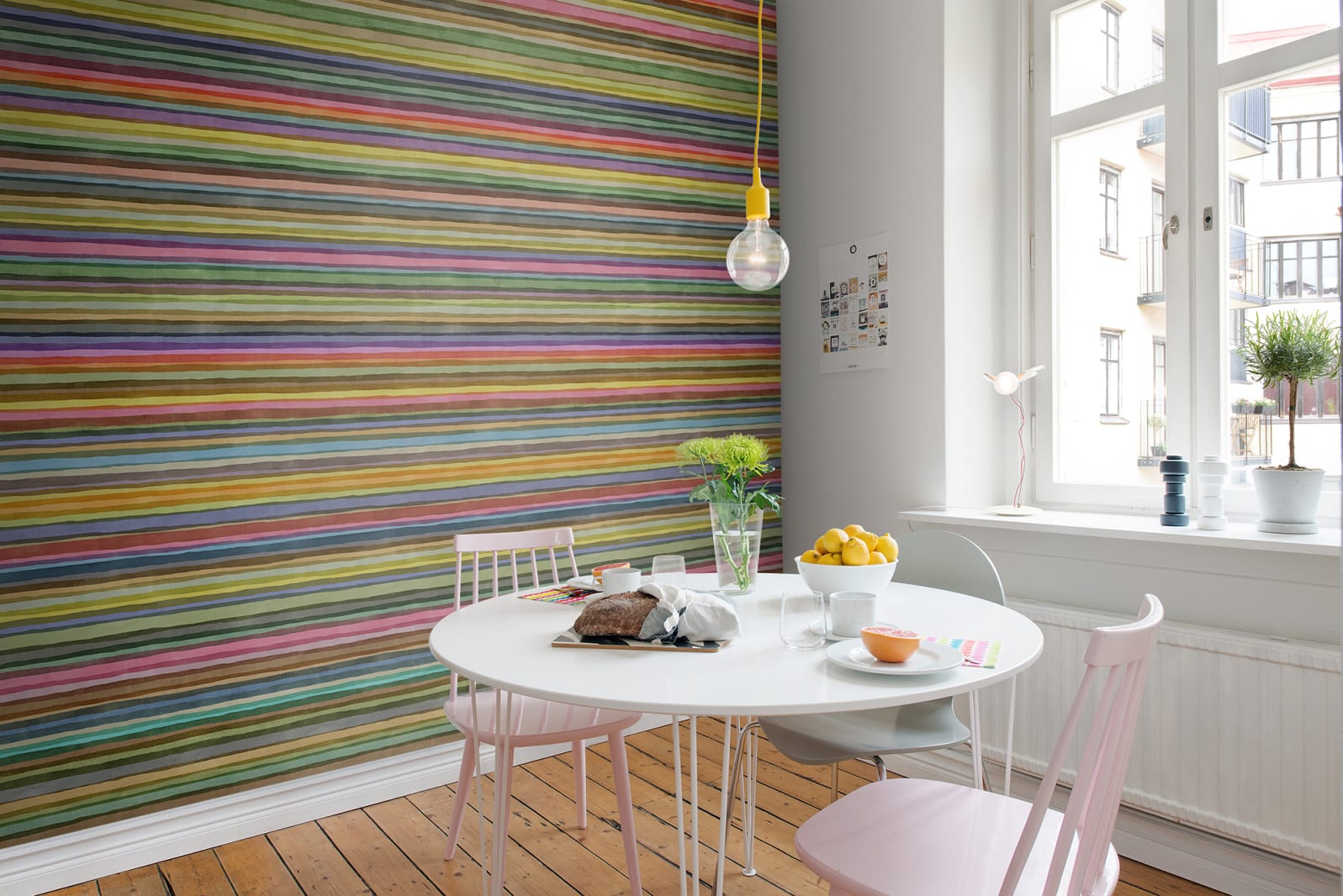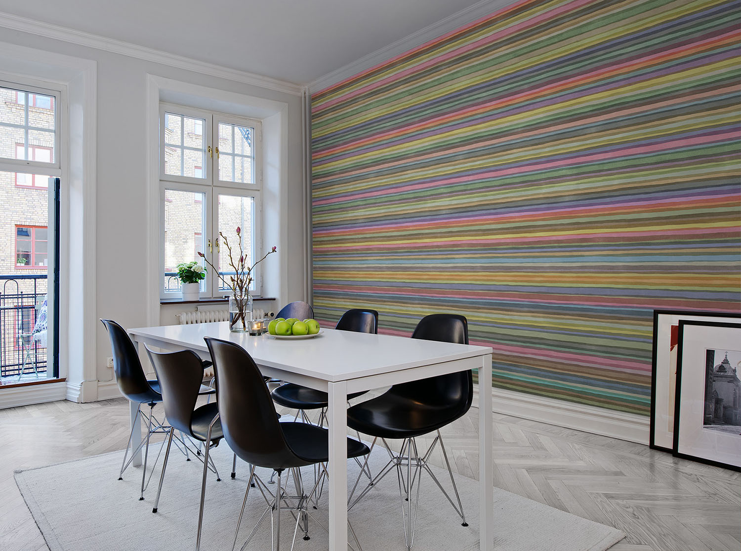 Un perete îmbrăcat în linii în culorile curcubeului! Ribbon va adăuga dimensiune,adâncime și substanță camerei dumneavoastră! Plasați-l vertical pentru a creea iluzia optică de înălțime, pentru spații cu tavanul jos, sau orizontal pentru un efect de lungime. Vibrant, fascinant, acest fototapet va transforma orice perete în punctul focal al întregii încăperi!