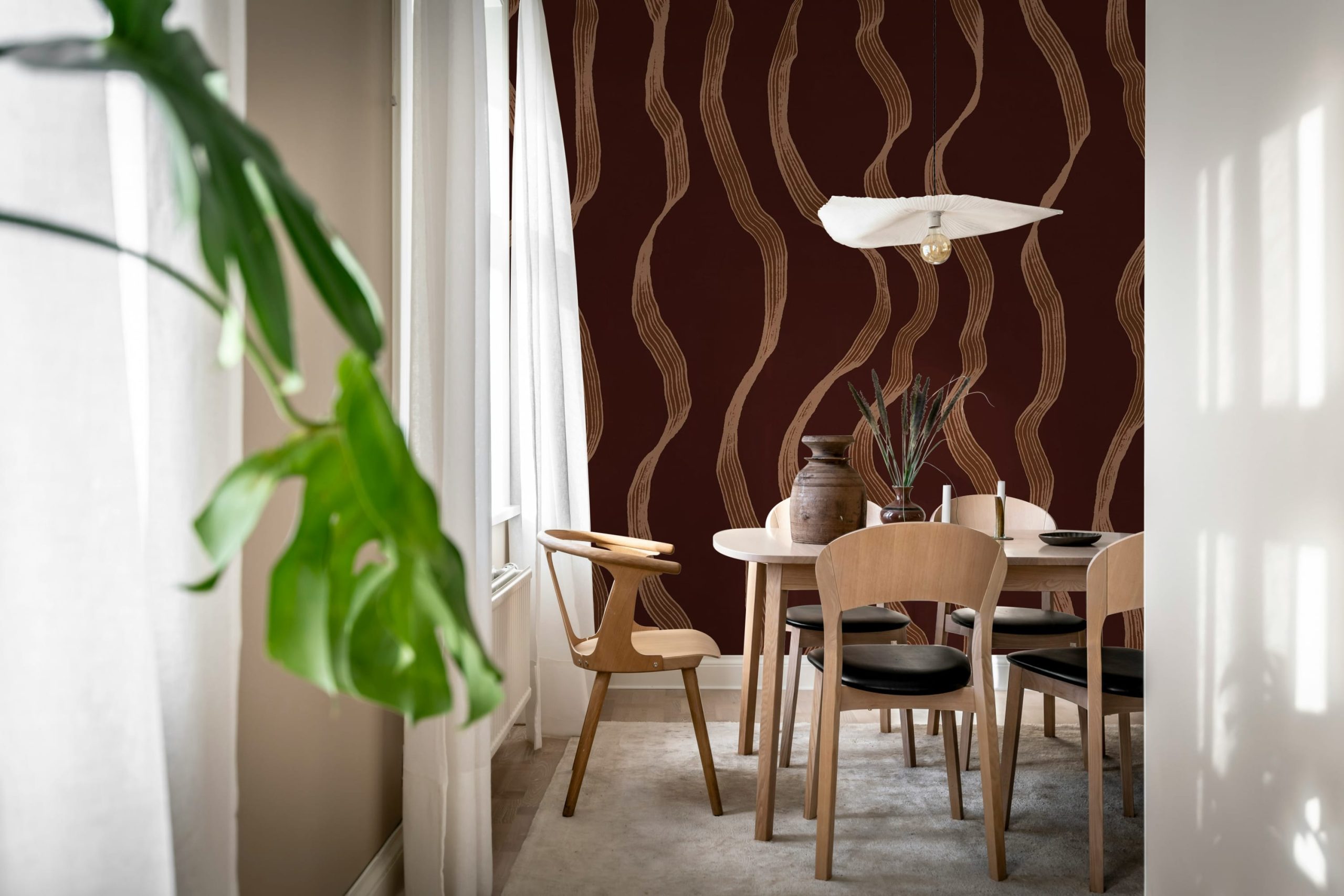 Tapetul cu dungi ondulate aduce un aer sofisticat și cald în orice încăpere. Perfect pentru un decor modern și primitor.
