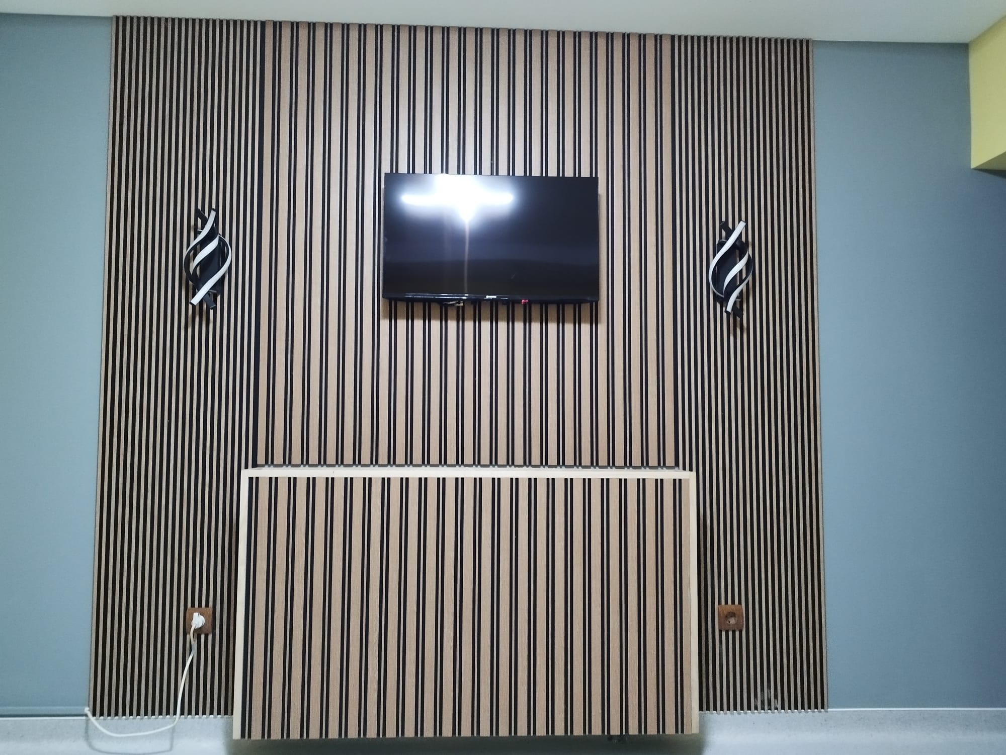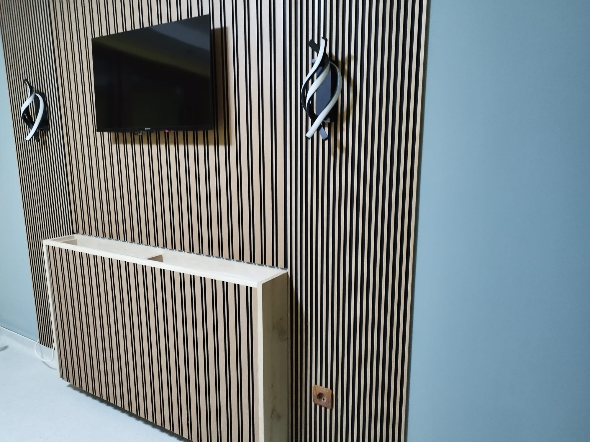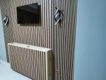 Executat cu atenție la detalii de Home Art Balkan, acest perete accent îmbină funcționalitatea cu estetica pură: integrează perfect zona media, ascunde discret cablurile și transformă un perete simplu într-un punct focal sofisticat.