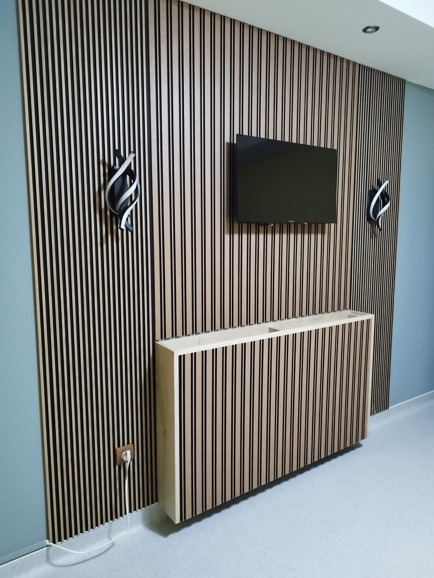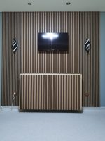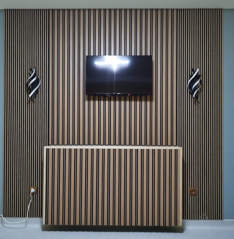 Acest accent de perete realizat din riflaj este mai mult decât un element decorativ – este o declarație de echilibru, ritm și rafinament. Liniile verticale adaugă profunzime și ordine spațiului, în timp ce textura caldă a lemnului creează o atmosferă primitoare și contemporană.