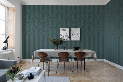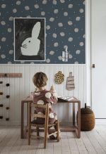 Imaginați-vă că umpleți peretii cu propria colecție de scoici. Rio este un tapet albastru închis desenat manual, care este prezentat aici punând în valoare micile diferențe de formă și punctele imperfecte. Un aspect fermecător și jucăuș care creează un decor minunat pentru întreaga cameră.