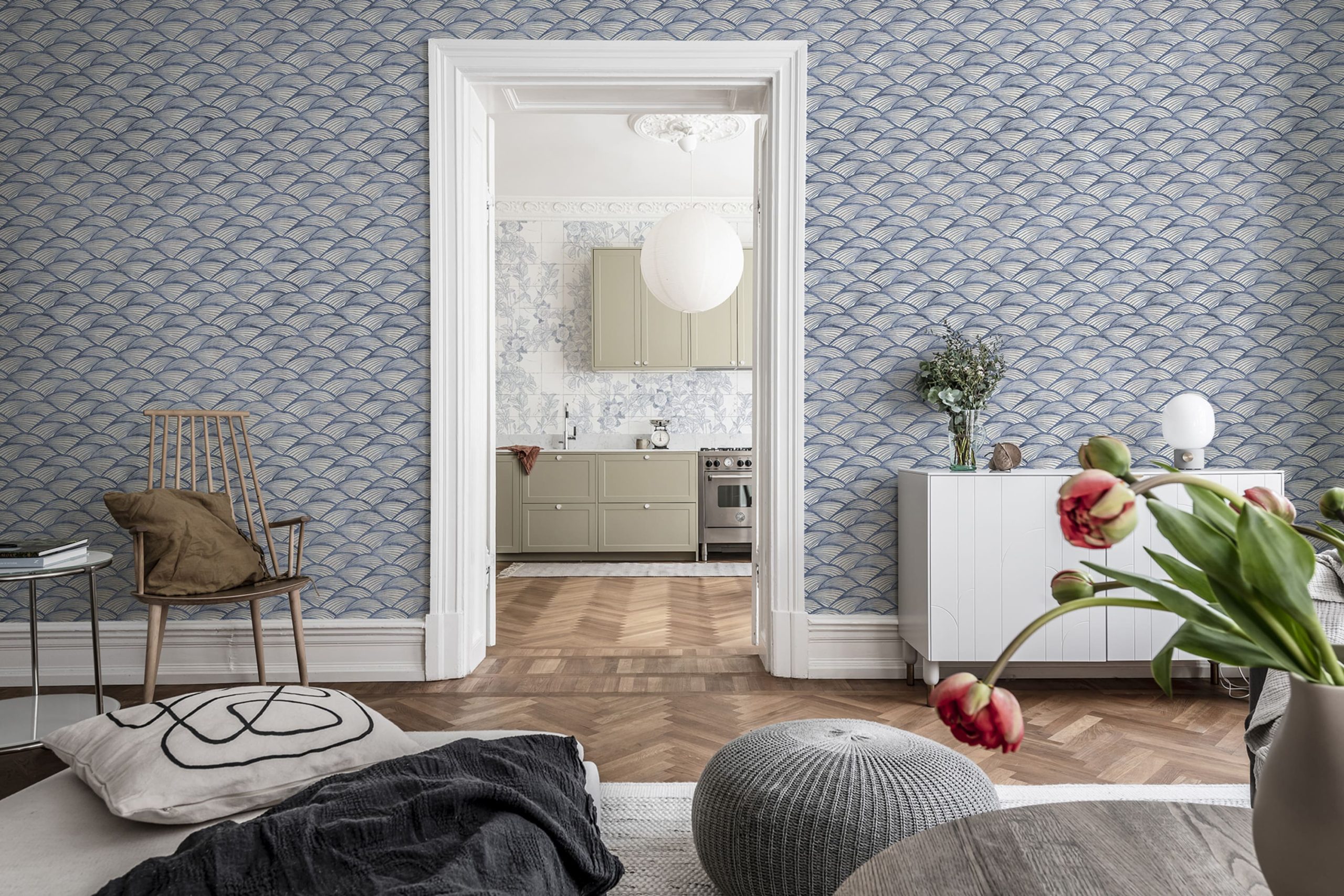 Simți briza oceanului? Aceste valuri albastre pictate manual creează un design confortabil și aproape retro. Un fundal plăcut pentru viața ta de zi cu zi. Modelul arată uzat și are un aspect fermecător patinat. Funcționează la fel de bine pe un perete sau pe toți patru! Poți să îl combini cu mobilier vintage sau clasic într-o cameră de zi.