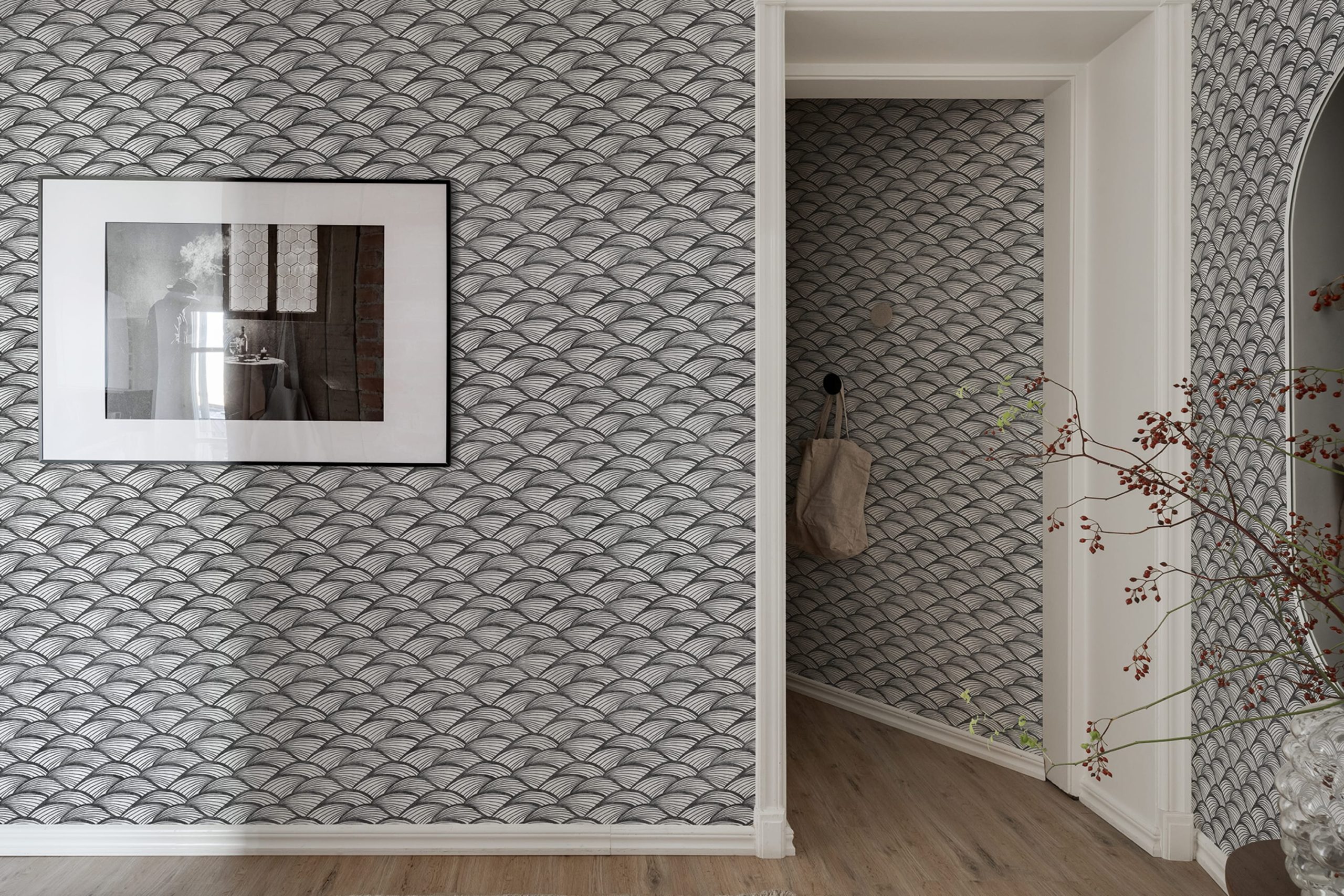 Design ondulat artistic cu patină. Fiecare linie este pictată manual si are o suprafață uzată de timp. Culoarea Graphite atrage ochiul printr-un contrast ridicat și un model calmant. Un tapet pentru rebelii încrezători care își revendică spațiul.