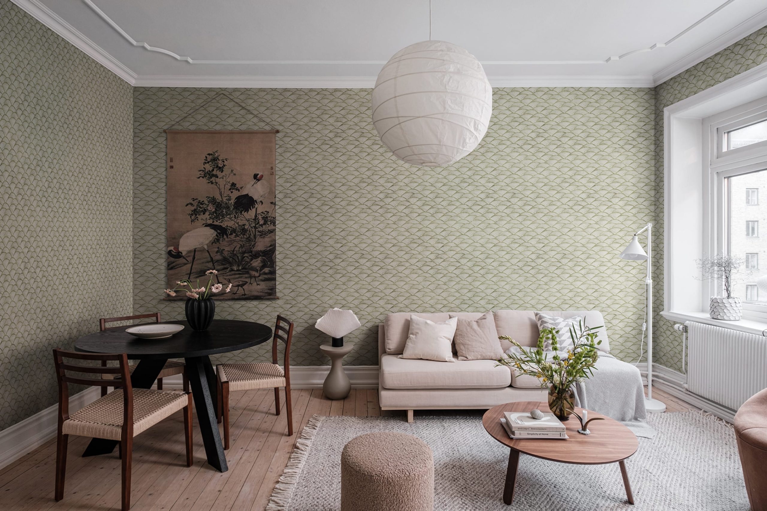 Un model pictat manual cu valuri având o expresie liniștitoare și plăcută. Suprafața are o patină uzată, dându-i un aspect cald și familiar. Acest tapet este un fundal perfect pentru majoritatea camerelor și se potrivește foarte bine cu detalii de design în galben.