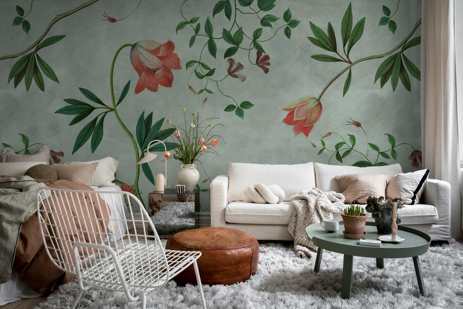 Crenguțe de magnolii înfloresc pe fototapetul nostru Magnolia pentru a vă aduce primăvara mereu în casă. Motivul floral delicat, în