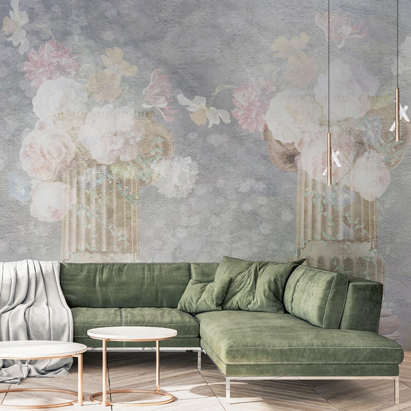 Rosaceae Bouquets este un tapet elegant, cu un design clasic, ce va aduce o notă de rafinament oricărei încăperi. Tapetul prezintă un buchet de flori roz și albe, așezat într-un vas clasic, pe un fundal gri deschis, cu o textură fină. Acest tapet este perfect pentru a crea o atmosferă elegantă și romantică în dormitor, living sau hol, adăugând o notă de delicatețe și sofisticare decorului.