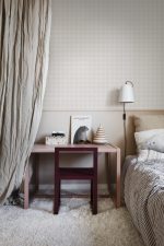 Un model Sandberg cu pătrate, util și simplu, într-o dimensiune mai mică, care imită figuri țesute, cunoscute sub numele de Gingham. Pe cât de clasic, pe atât de contemporan. Ruta înseamnă pătrat în suedeză, iar tapetul Ruta Blush are un model simetric țesut în nuanțe de roz deschis.