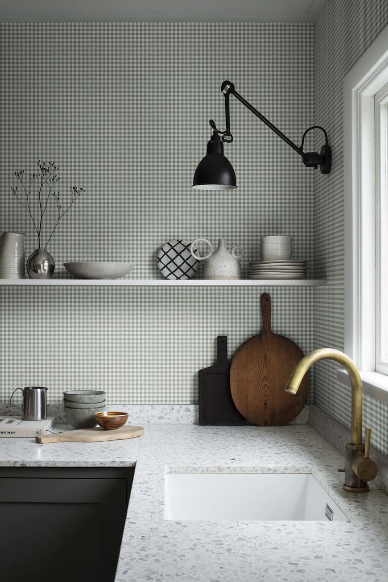 Un model Sandberg cu pătrate, util și simplu, într-o dimensiune mai mică, care imită figuri țesute, cunoscute sub numele de Gingham. Pe cât de clasic, pe atât de contemporan. Ruta înseamnă pătrat în suedeză, iar tapetul Ruta Forest Green are un model simetric țesut în nuanțe verzi.