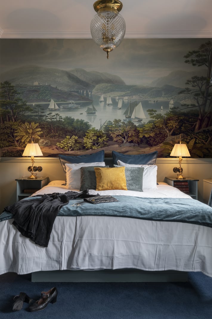 Creați-vă propriul sanctuar. Acest mural de epocă vintage cu prim-planul său distinct și fundalul visător nebunesc stabilește dispoziția potrivită.