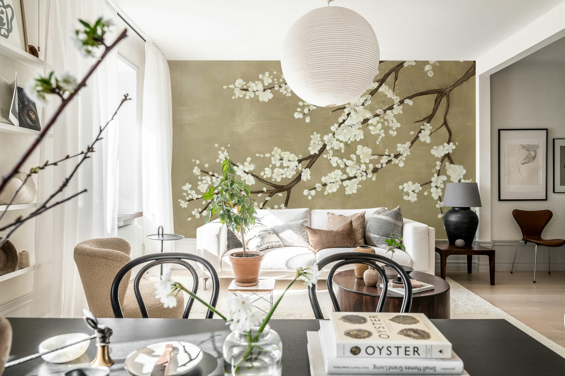 Home Tapet și Fototapet Sakura Branch, Beige, Rebel Walls