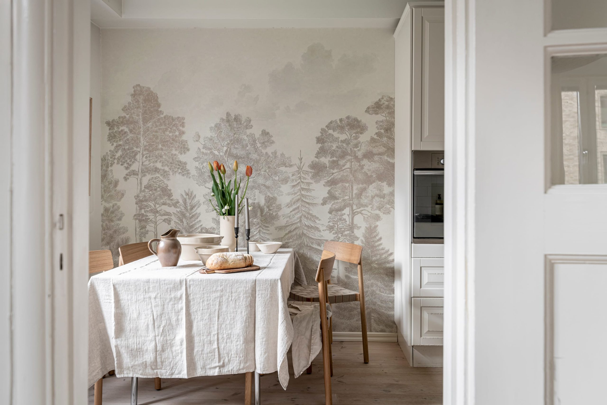 Adaugă o notă de eleganță vintage cu acest tapet rafinat. Designul subtil cu motive scandinave transformă orice cameră într-un spațiu primitor și stilat. Ideal pentru living, dormitor sau birou.