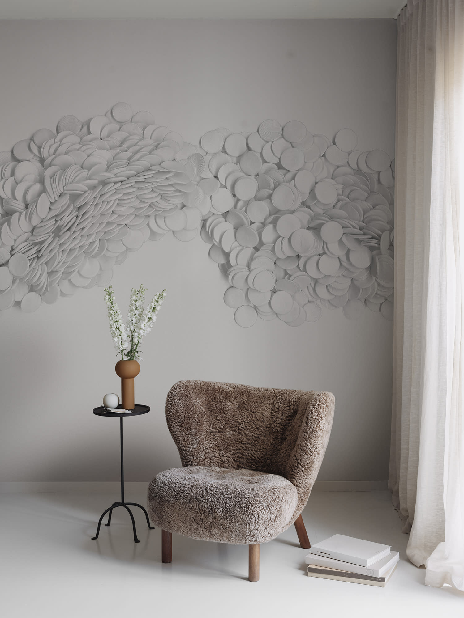 Sute de puncte de lut lucrate manual și răspândite pe pereții tăi creează un model organic uimitor în 3D în acest tapet extraordinar. Arta tactilă a modelării lutului se întâlnește minunat cu tehnologiile moderne de imprimare. Această bijuterie este disponibilă în culoarea alb.