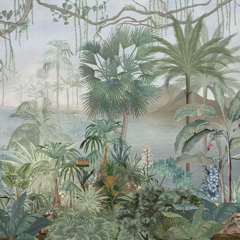 Adaugă o notă tropicală spațiului tău cu Tropical Light, un tapet cu un design floral luxuriant. Frunzele verzi vibrante și