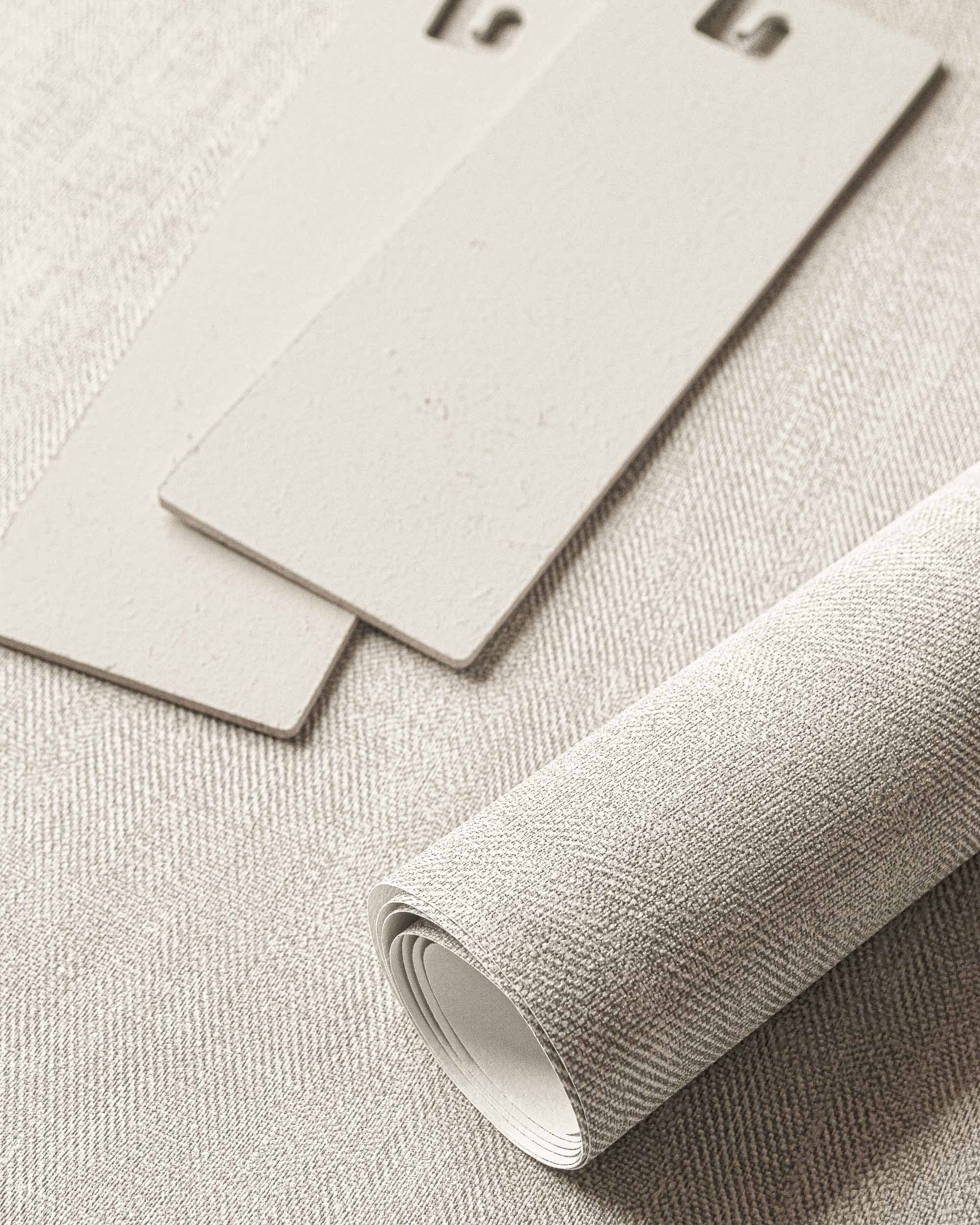 Tapetul Sergé Taupe II de la Coordonné este un design texturat în tonuri de alb/gri din colecția Palette. Nuanțe sofisticate de
