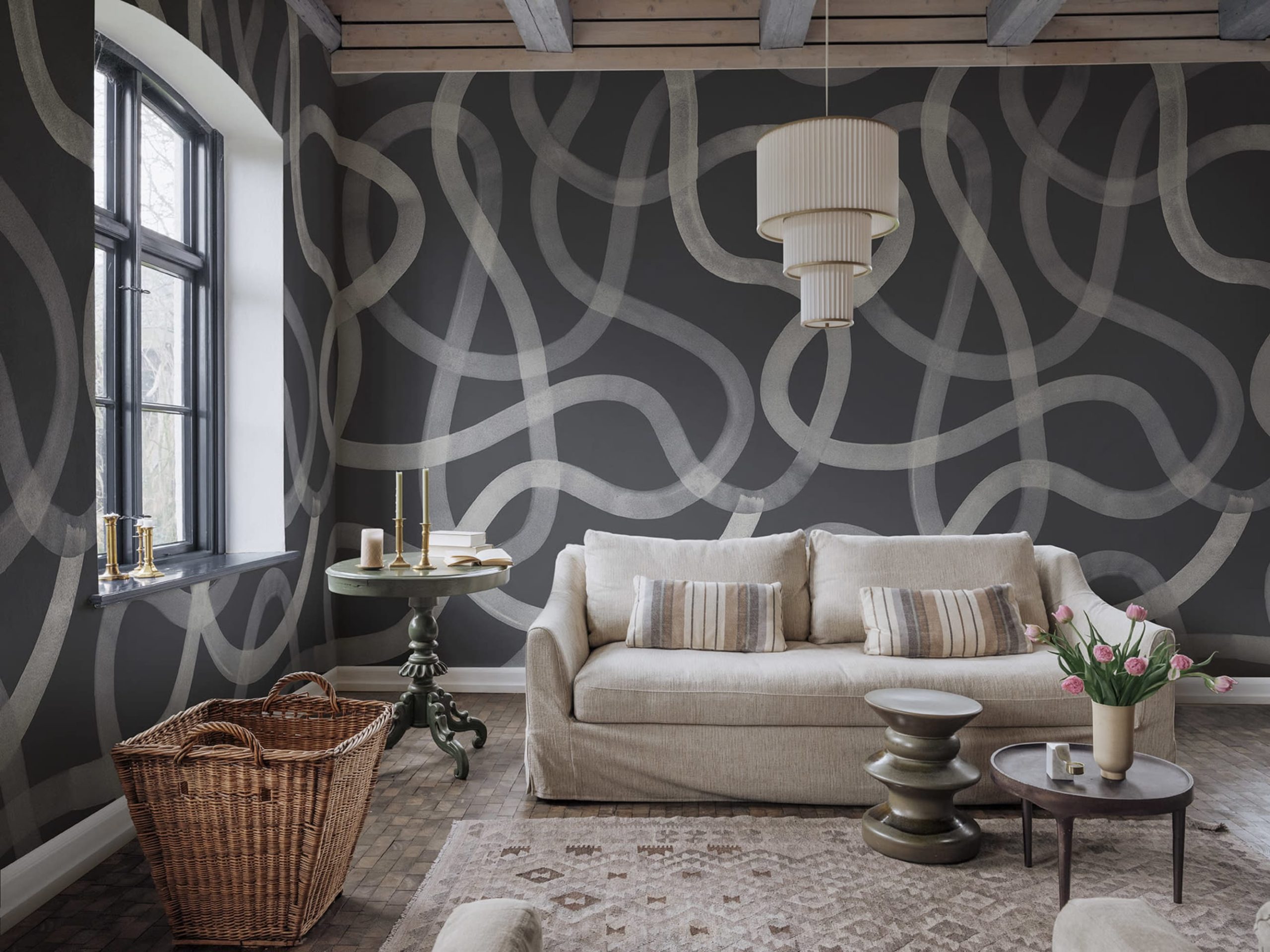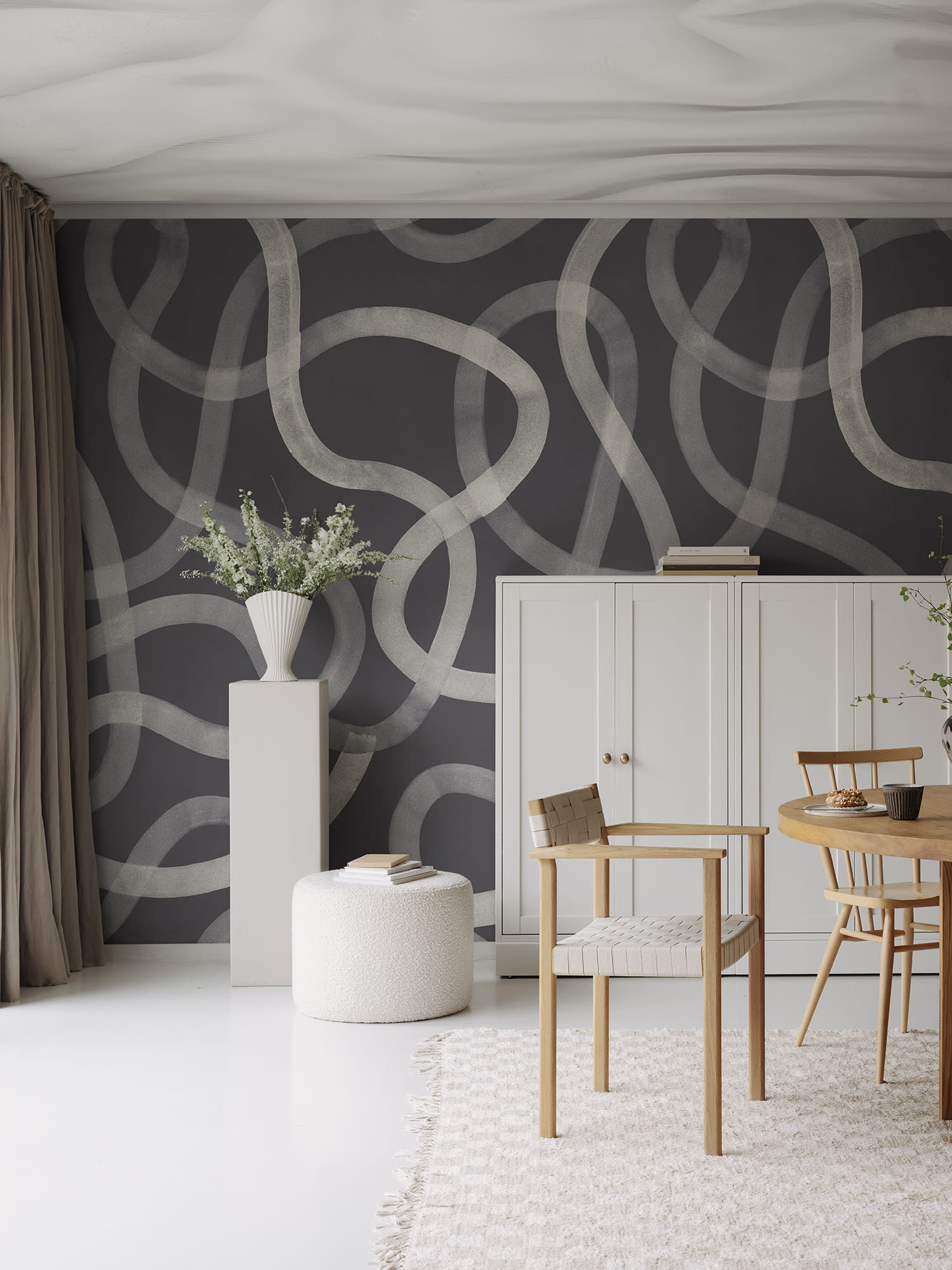 Serpentine este pictat manual de către designerii noștri. Linii mari și îndrăznețe formează un model grafic cu un flux organic deosebit. Atrage privirile pe toți cei patru pereți și este și mai uimitor atunci când este aplicat pe tavan! Îndrăznește să îți revendici spațiul cu LINII mari cu majusculă. Varianta Graphite vine cu o bază neagră și linii bej nisip.