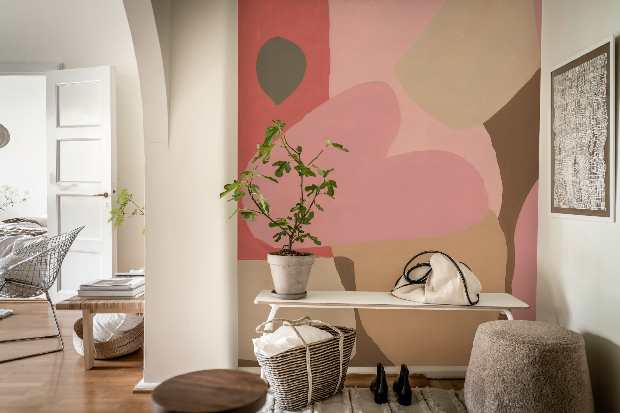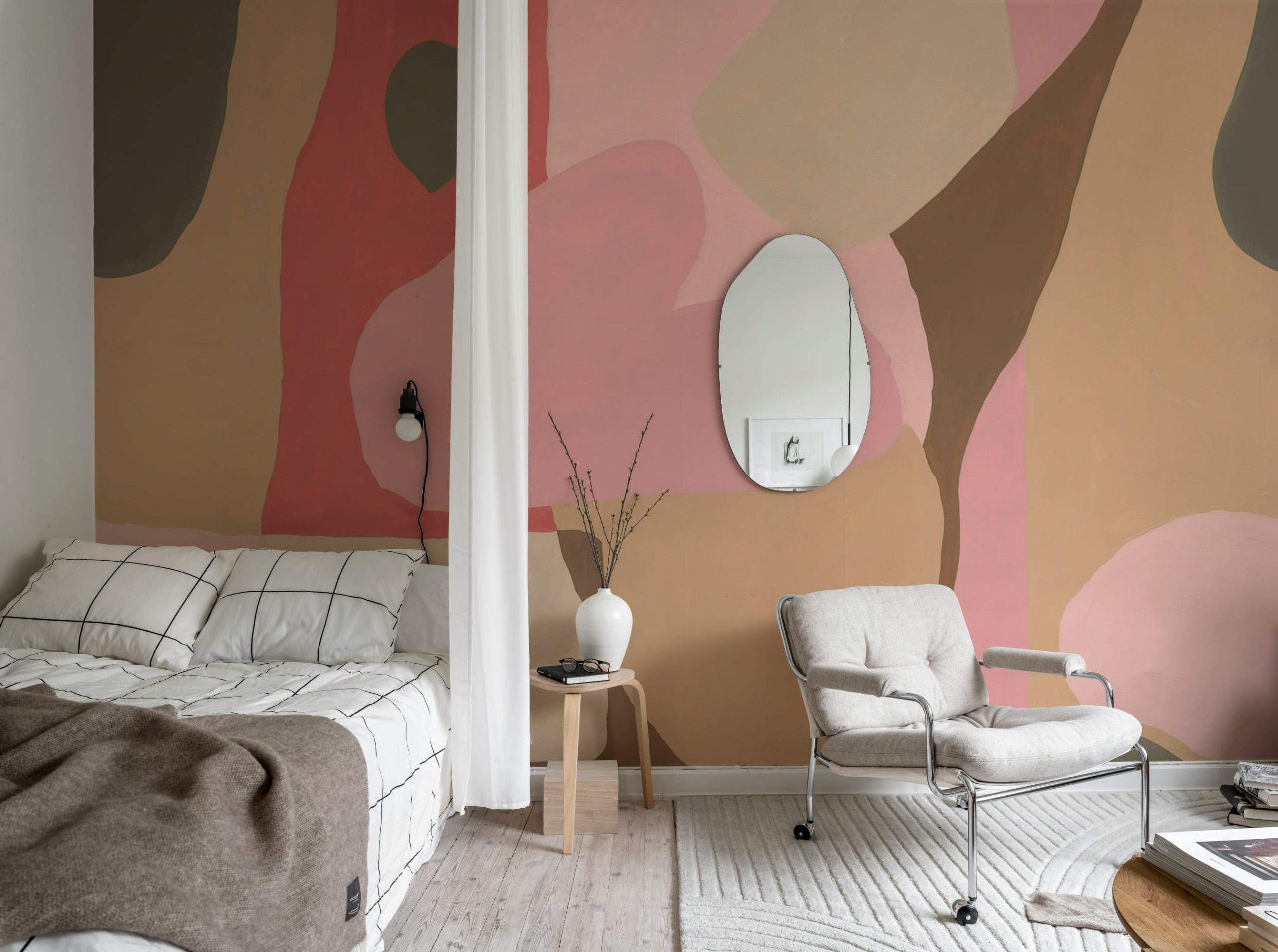 Adaugă un strop de culoare și modernitate interiorului tău cu acest model abstract în tonuri calde de roz și maro. Perfect pentru un decor elegant și primitor.
