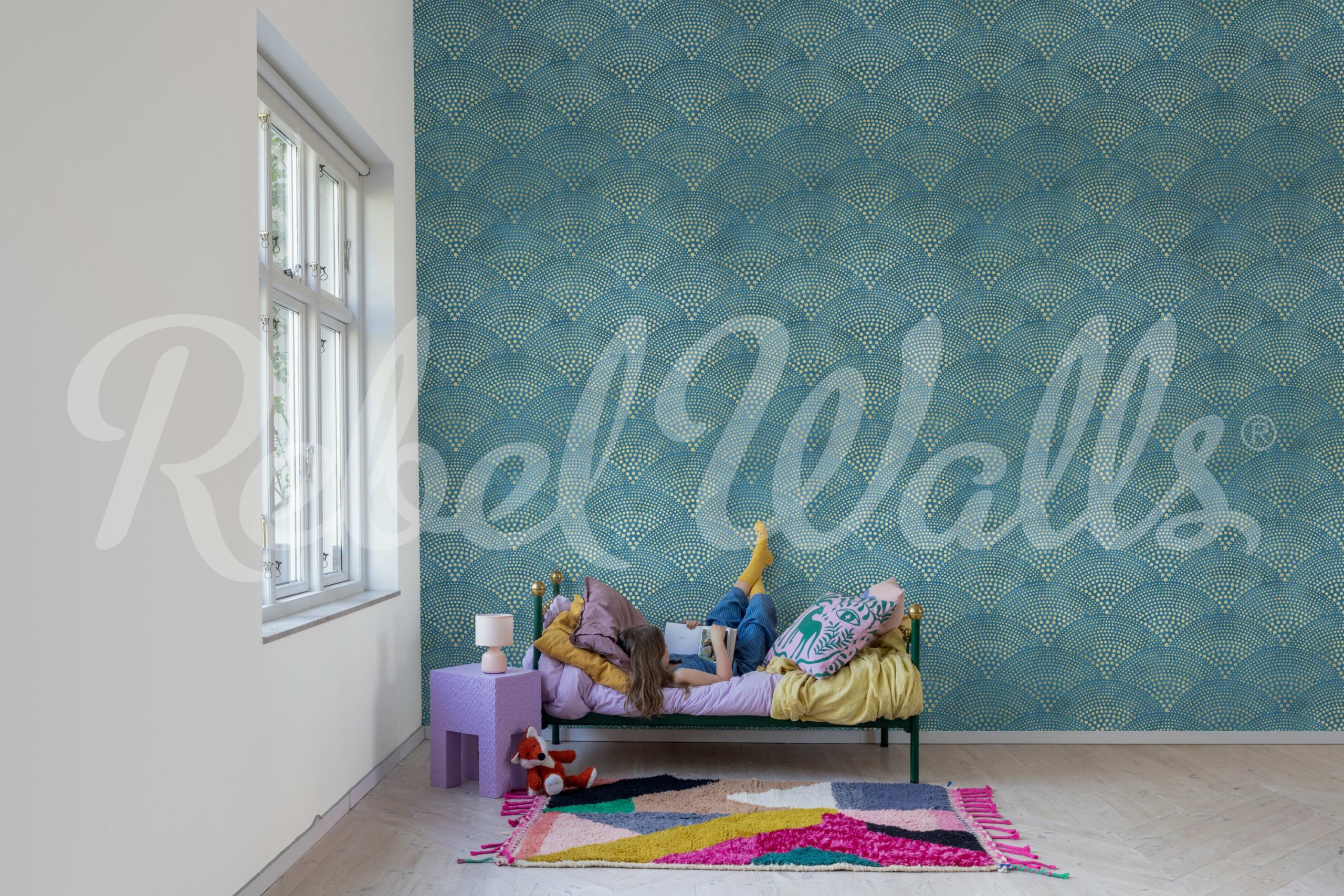 Home Tapet și Fototapet Shimmer Fan, Blue, Rebel Walls