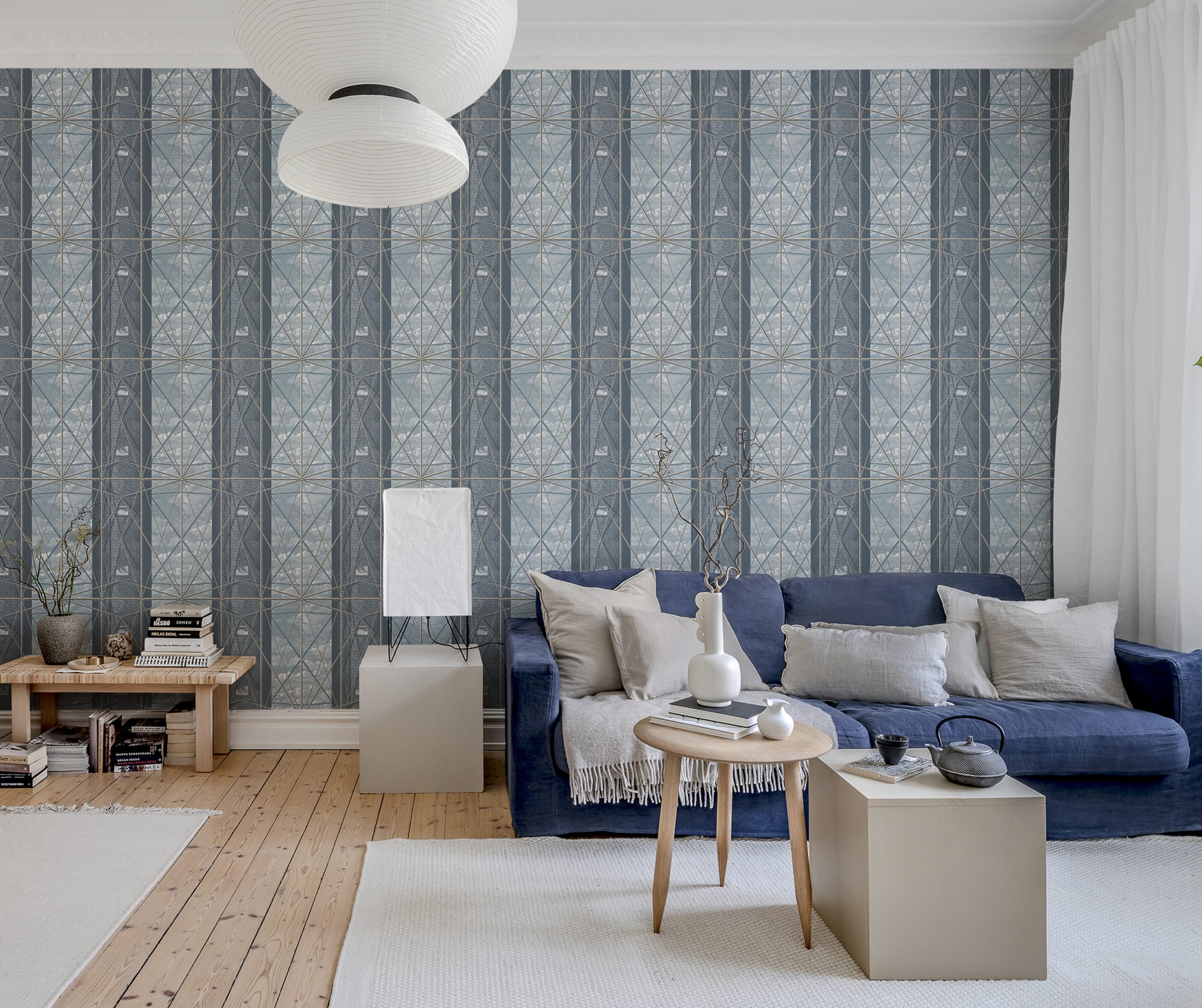 Acest tapet cu design geometric modern, cu nuanțe de albastru deschis și o textură subtilă, aduce o notă de eleganță și rafinament în orice cameră. Ideal pentru crearea unui spațiu relaxant și liniștitor.
