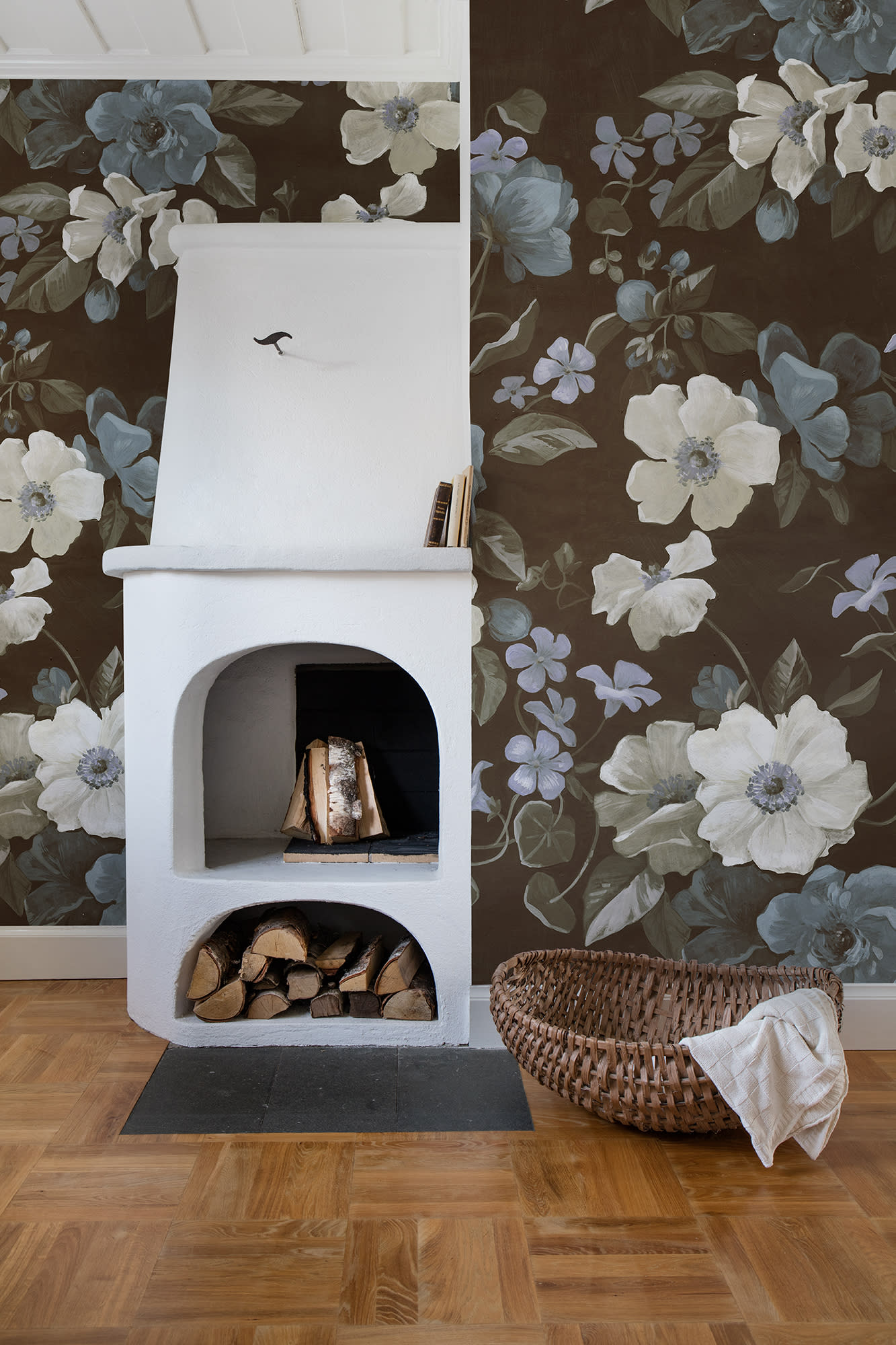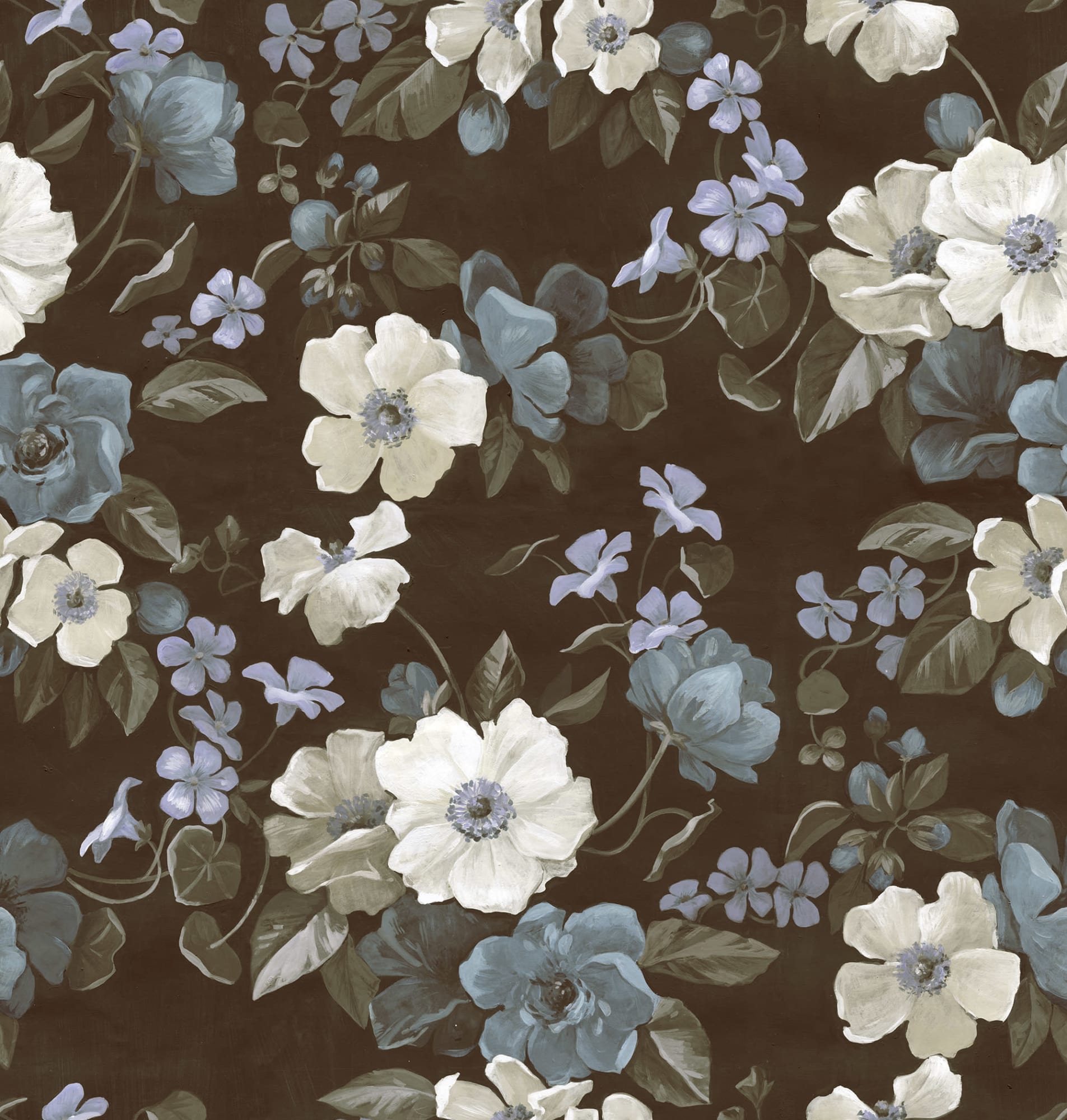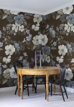 O adevărată frumusețe, într-adevăr. Acest model impresionant, dar totuși drăguț, în stil de casă de la țară, a fost pictat manual pe o pânză și ulterior scanat pentru a fi folosit ca tapet. Designul se potrivește într-un ambient romantic, iar scala mare îi conferă acel impuls de încredere necesar în majoritatea camerelor. Varianta de culoare Brown are un fundal maro intens și flori în alb, albastru deschis și bej, și frunze verde închis, aproape negre.