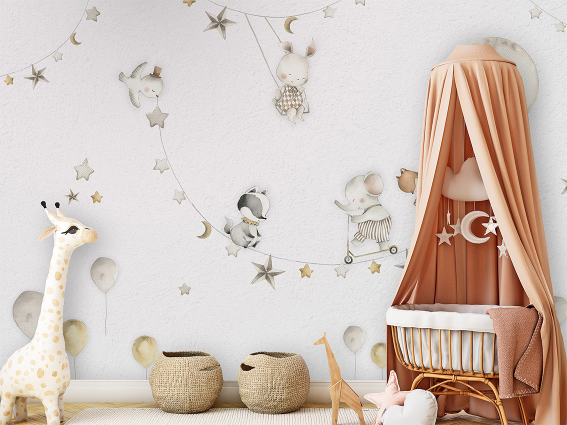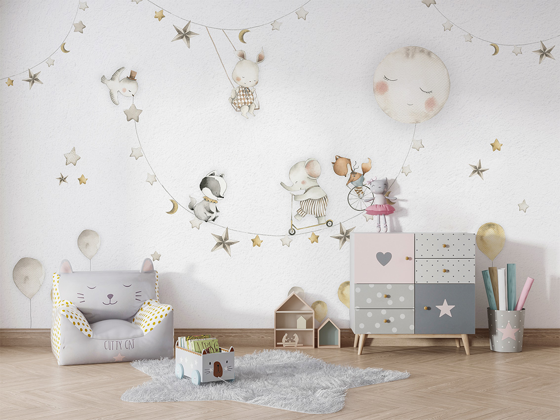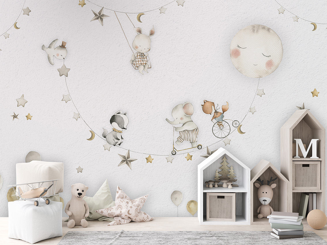 Transformă camera copilului într-un tărâm de vis cu acest tapet încântător! Decorat cu personaje adorabile și o lună dulce, acest fototapet va aduce bucurie și magie în fiecare zi.