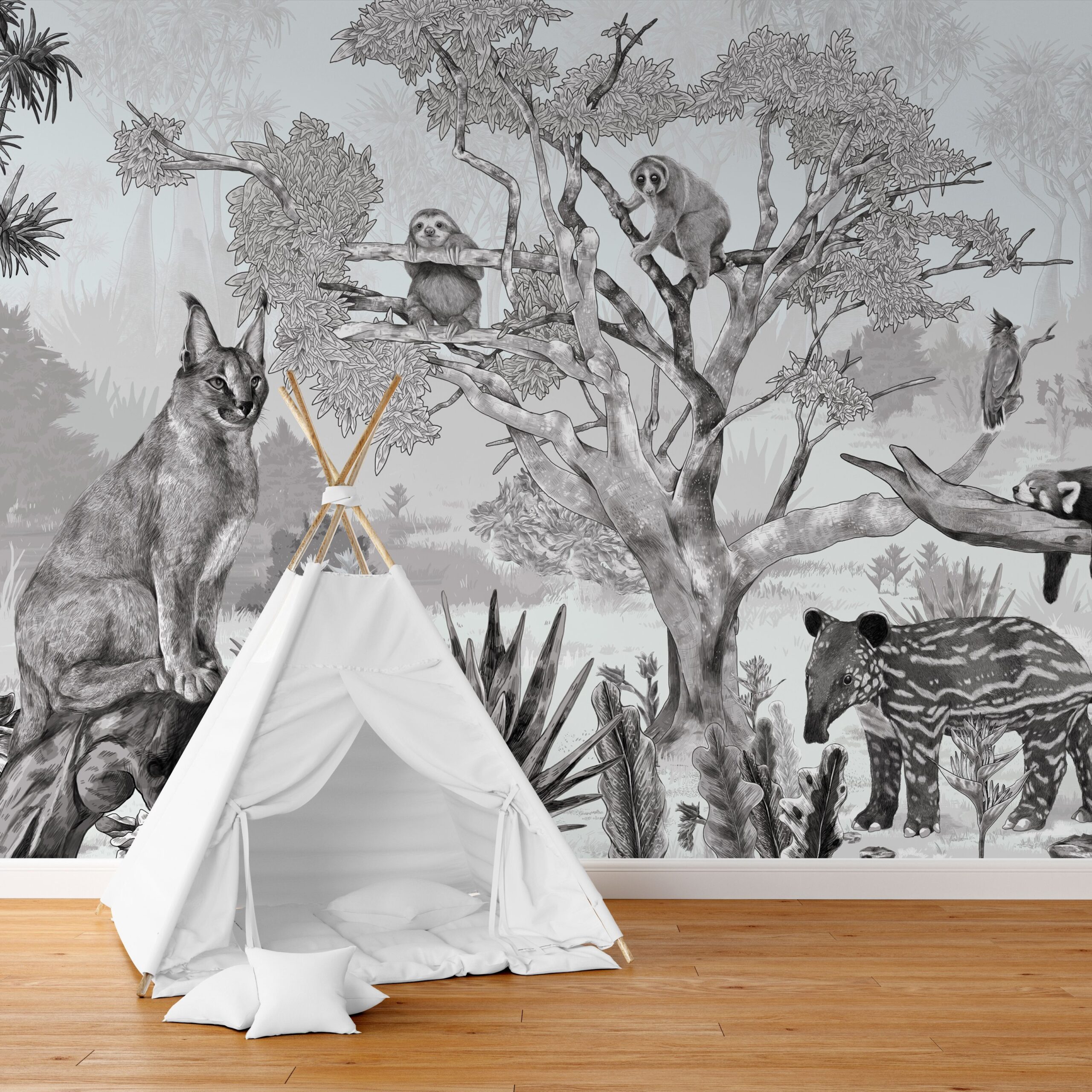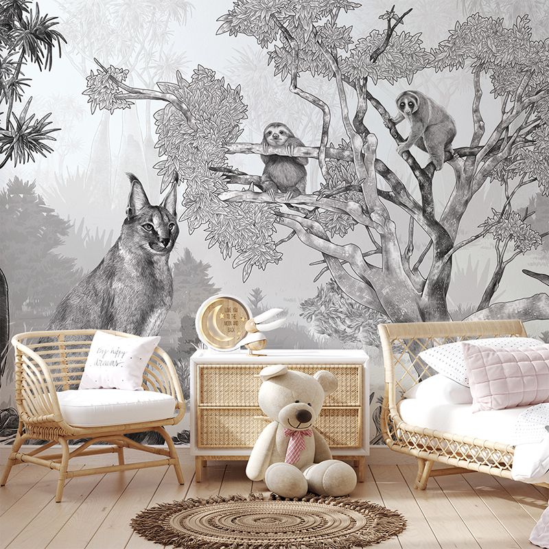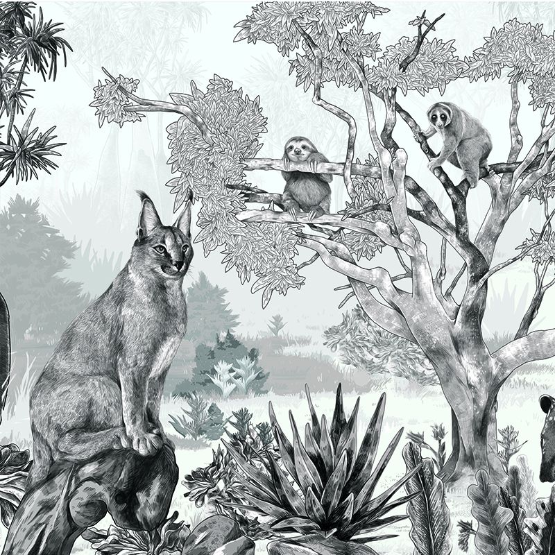 Adaugă o notă exotică spațiului tău cu acest Tropical Story, o tapetă vibrantă cu un design luxuriant, inspirat din junglă.