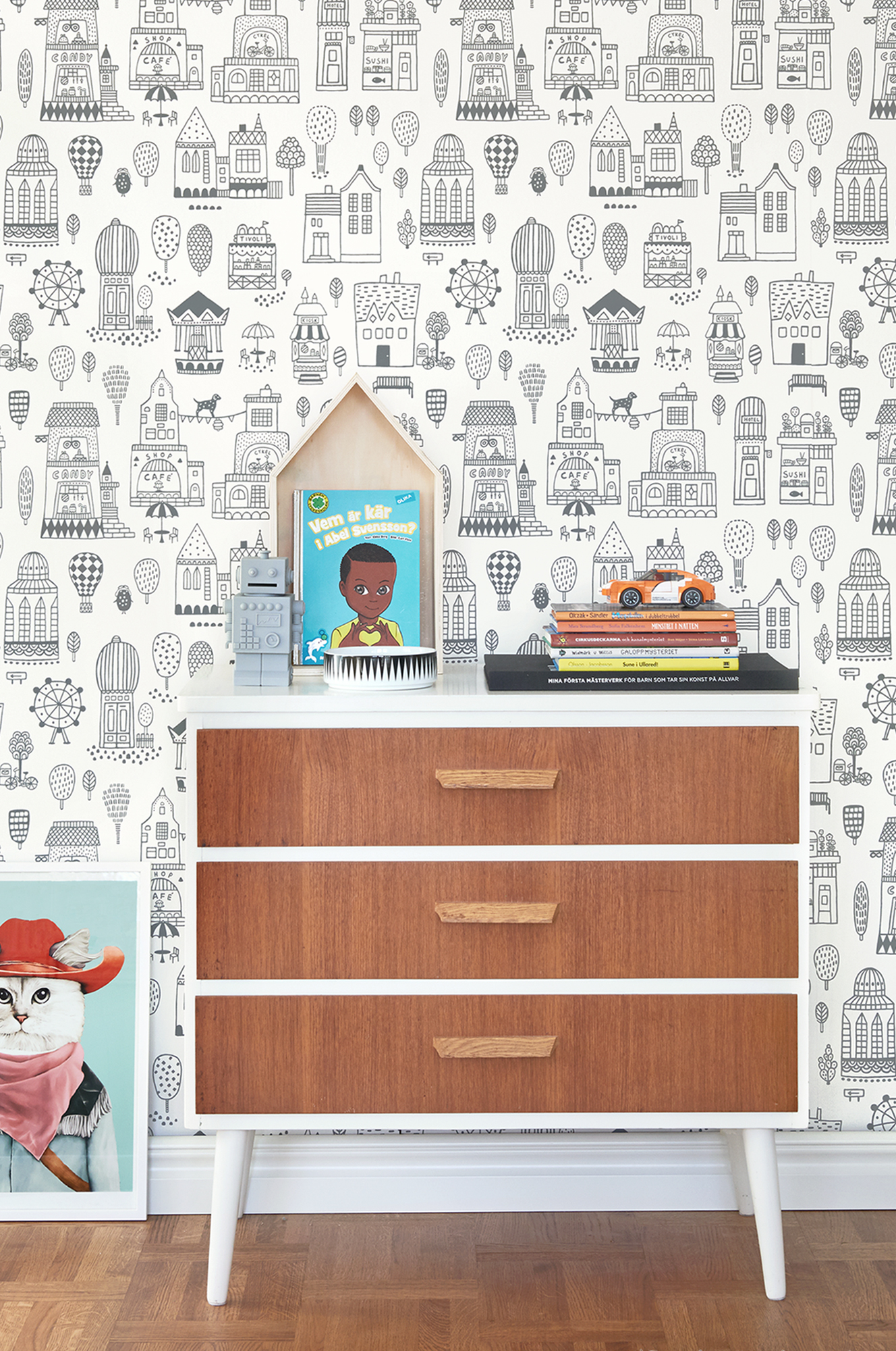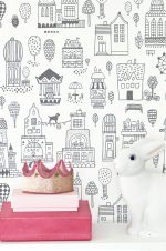 Acest model de tapet prezintă un oraș animat, cu case drăguțe, magazine, copaci și baloane cu aer cald. Culorile delicate și desenele grafice simple îl fac perfect pentru camerele copiilor. Tapetul este imprimat pe hârtie de înaltă calitate și este ușor de aplicat.